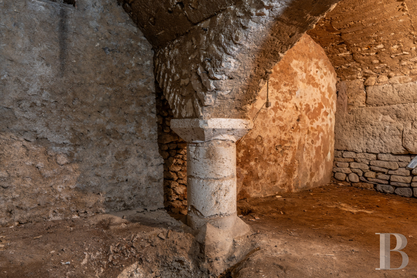 Elle est accessible depuis le rez-de-chaussée, via un escalier en pierre sous trappe. Voûtée, elle occupe toute la surface de la maison, allant même jusqu’à l’aplomb de l’encorbellement des étages. Deux piliers en pierre soutiennent des arcades, également en pierre. Une cavité ancienne dans le sol laisse apparaître ce qui constituait peut-être un deuxième niveau de cave.