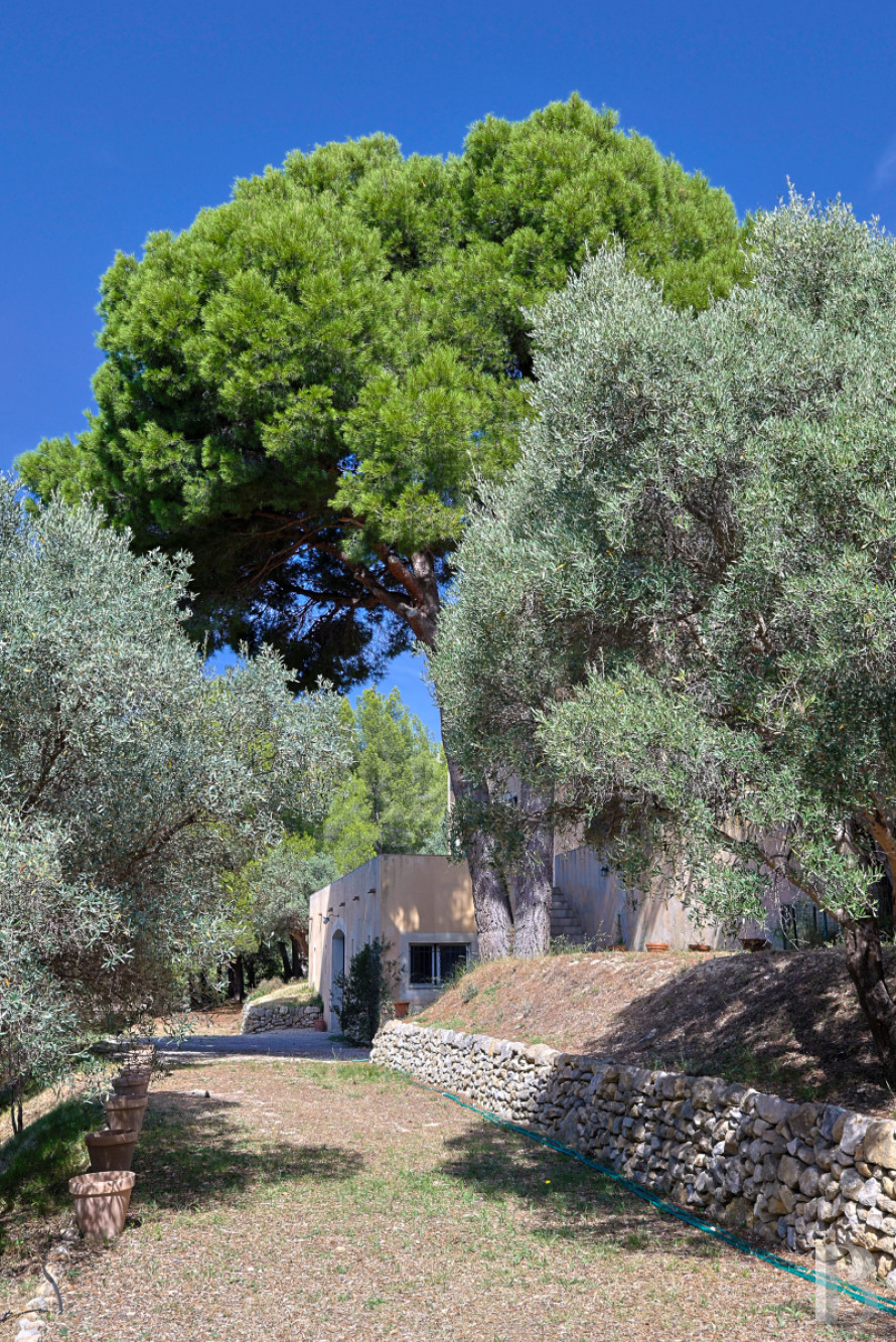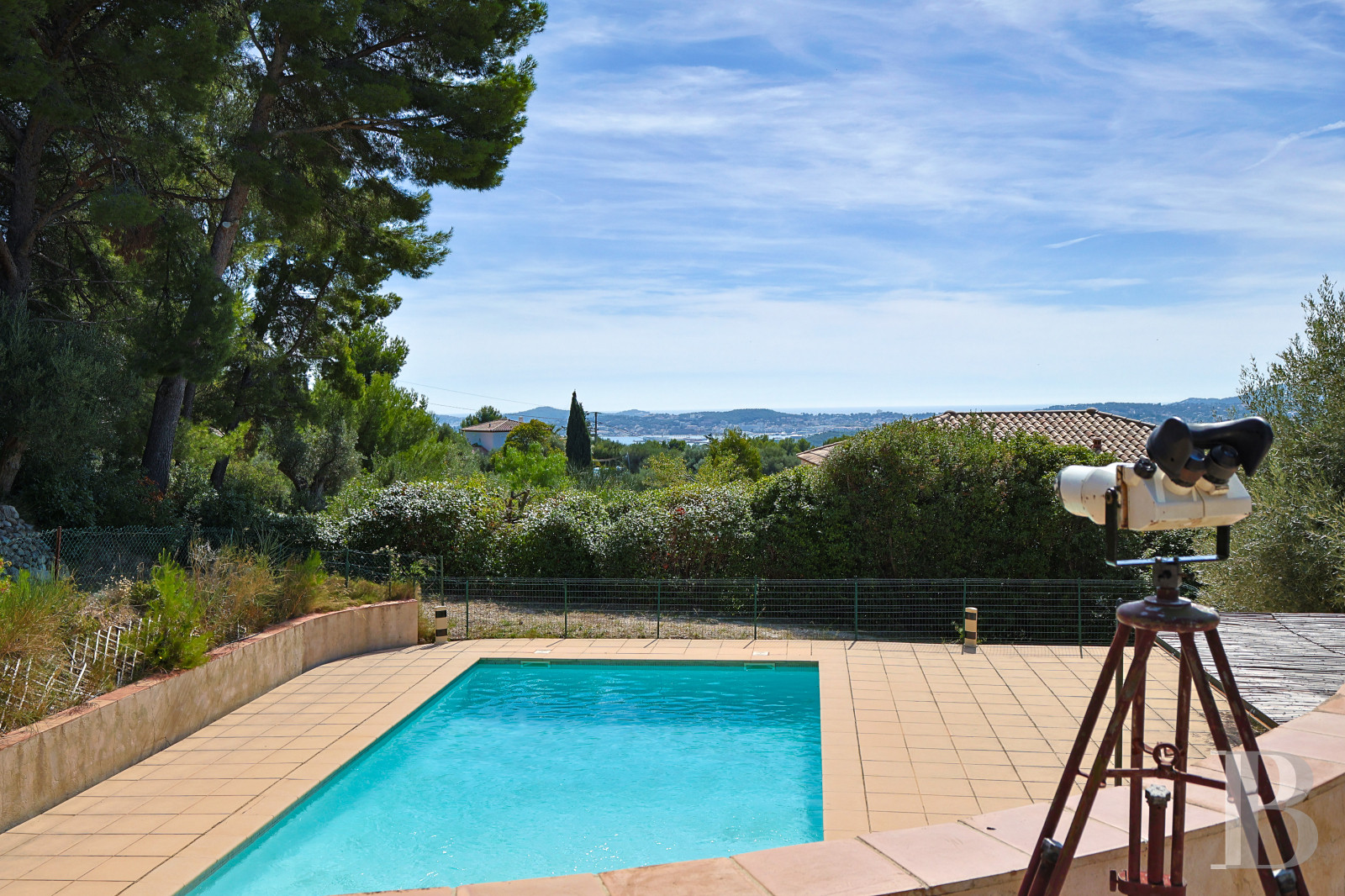 En contrebas de la terrasse située au sud de la maison, se trouvent une piscine de 11 x 5 m et sa grande plage couverte de carreaux en terre cuite. Le pool house et le bâtiment technique de la piscine sont à proximité. À l'abri des regards, le bassin permet de profiter de la vue sur la rade.Le parc, de 5 100 m², est composé de grandes restanques enherbées ou gravillonnées, couvertes principalement d'oliviers, pour beaucoup très anciens. S'y ajoutent ponctuellement des pins parasols, des lauriers-roses, des massifs de romarin et de lavande, autant de plantes méditerranéennes peu consommatrices d'eau et porteuses d'agréables senteurs.Our opinion