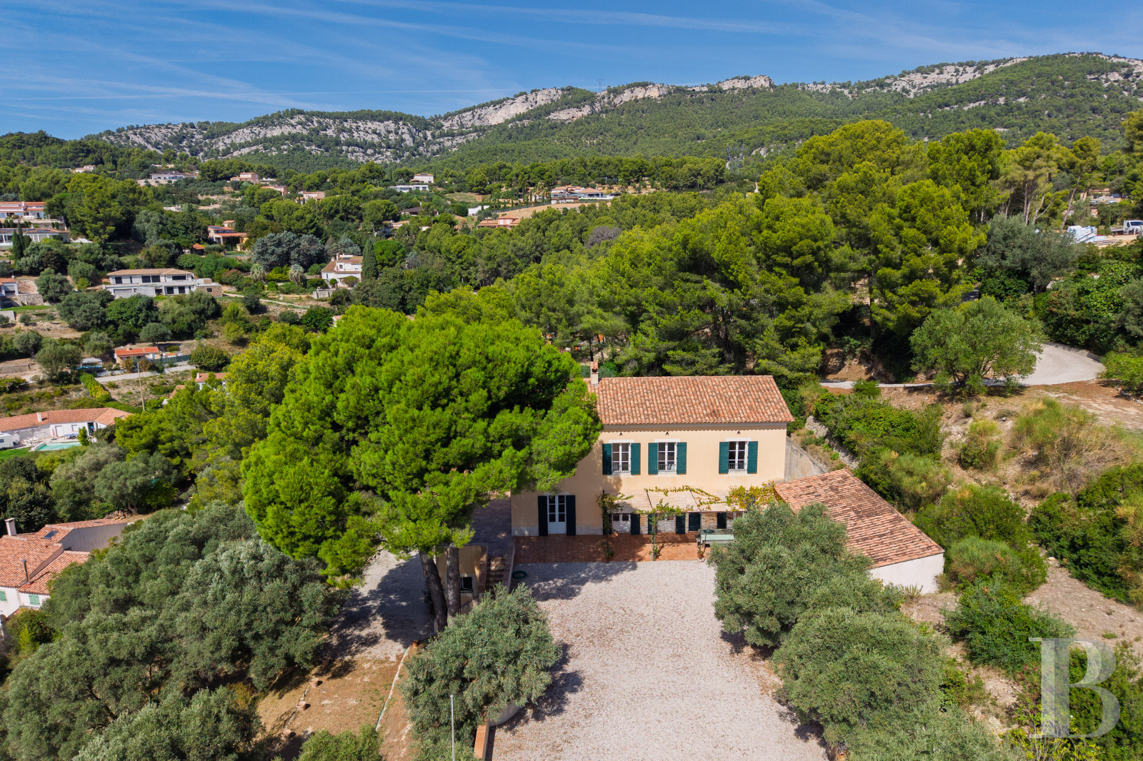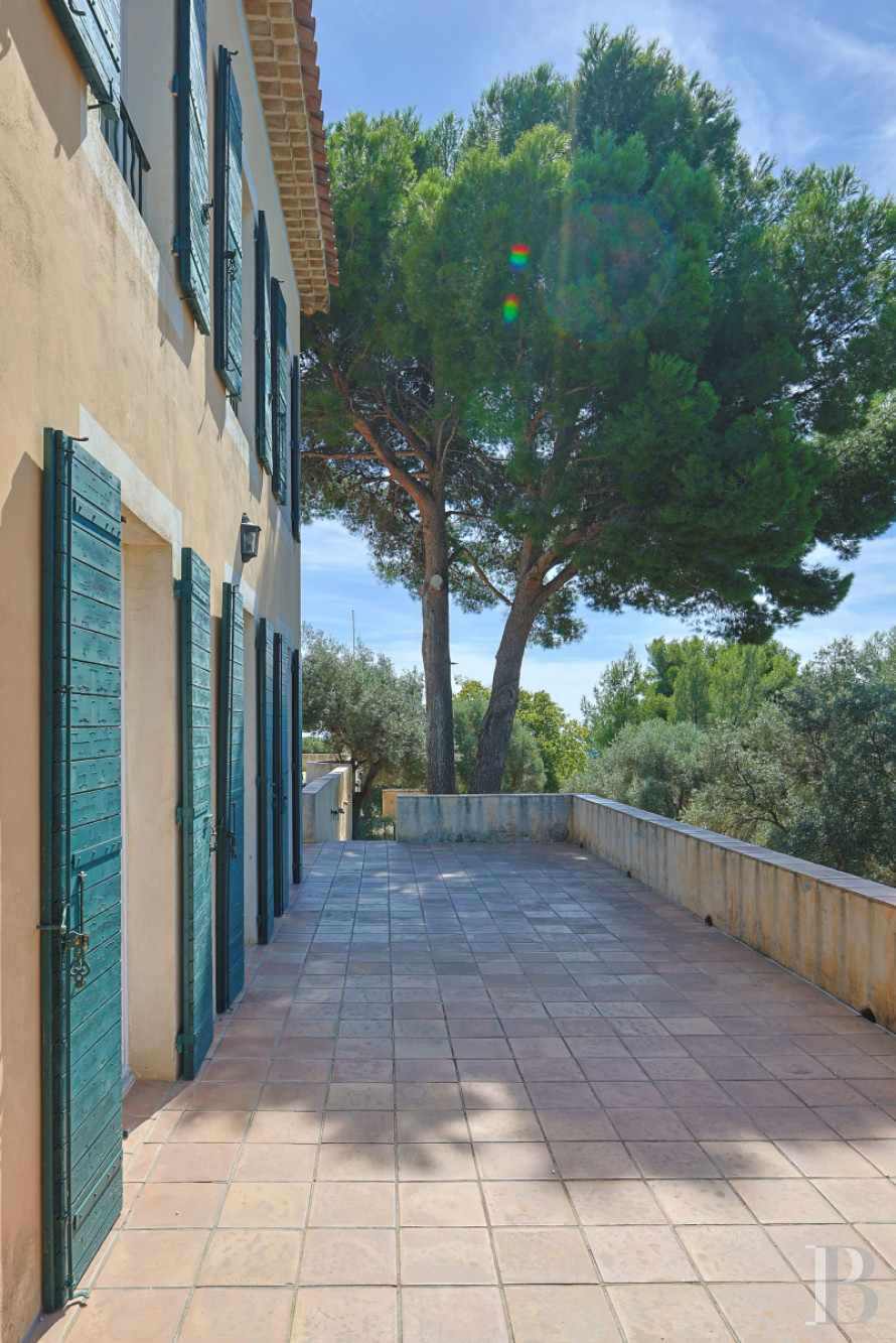 Les occupants actuels se sont attachés à bâtir une bâtisse confortable tout en privilégiant les matériaux traditionnels des vieilles bastides provençales ainsi qu'une architecture assez classique. Ils ont aussi oeuvré à mettre en valeur la position surélevée du terrain, qui jouit ainsi d'un point de vue fort agréable sur la rade de Toulon et les collines environnantes. Le jardin et la piscine assurent quant à eux une précieuse tranquillité baignée d'essences méditerranéennes. La situation de la propriété, assez idéale, au sein d'une colline qui a gardé tout son caractère et son air d'antan, permet un accès facile à Toulon comme à la campagne ou à la plage, à moins de 15 min de route.