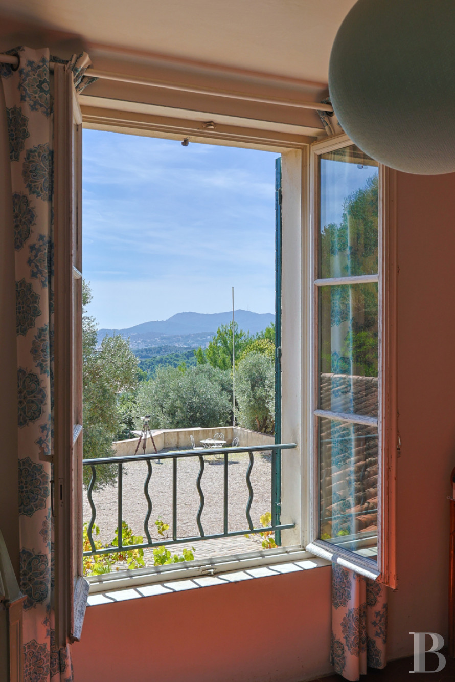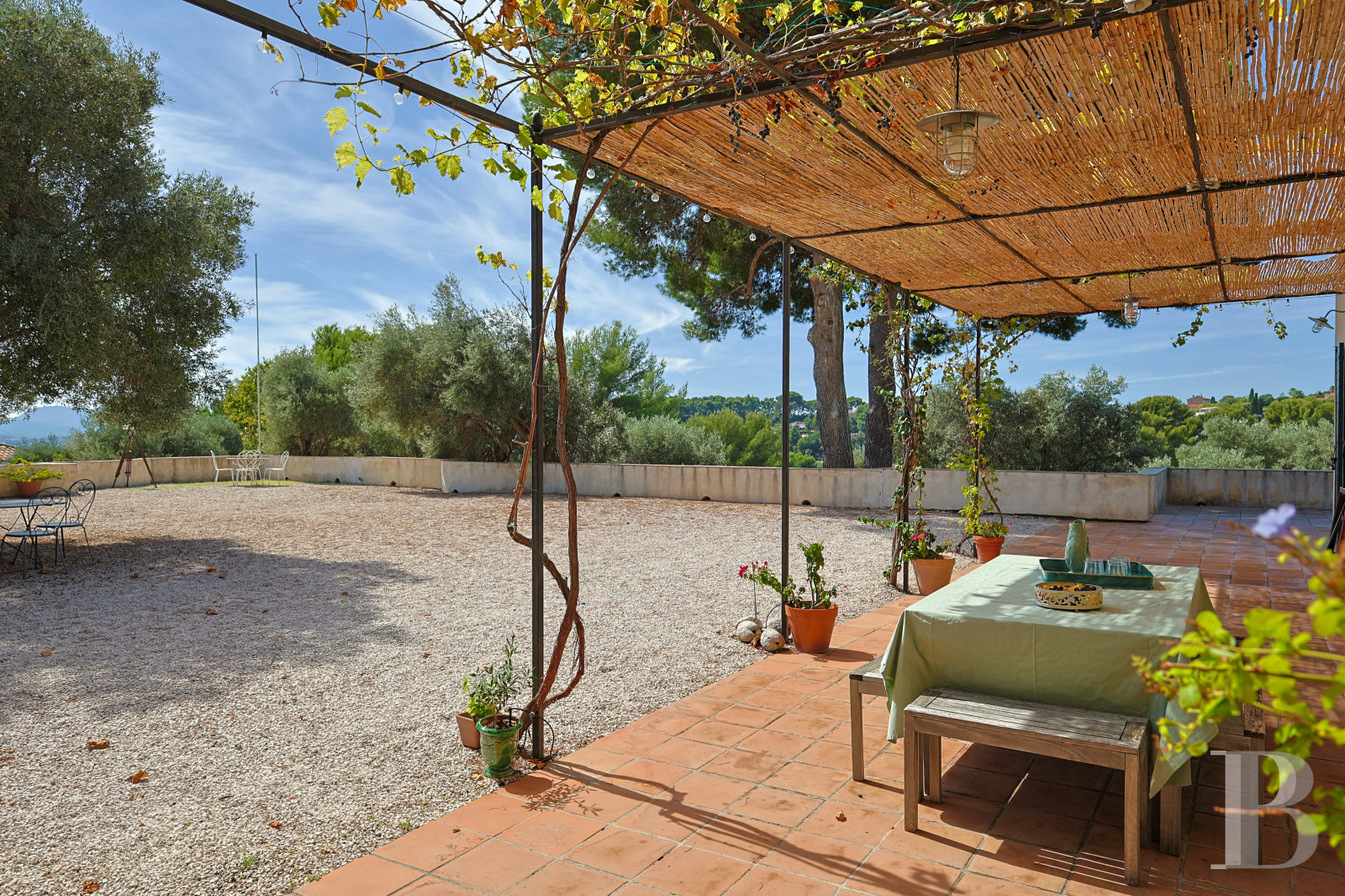 Sa façade aux teintes blanche, verte et jaune ocre, sa treille couverte de vigne, ses fenestrons latéraux, son oeil-de-boeuf au fronton ouest et son toit à double génoise donnent un incontestable cachet à la bastide, construite dans les années 1980 par ses occupants actuels. Sur ses terrasses très étendues, accessibles par des baies vitrés depuis les pièces principales, de nombreux espaces de repos ménagent des points de vue sur la mer à l'horizon et la campagne environnante.Le rez-de-chaussée