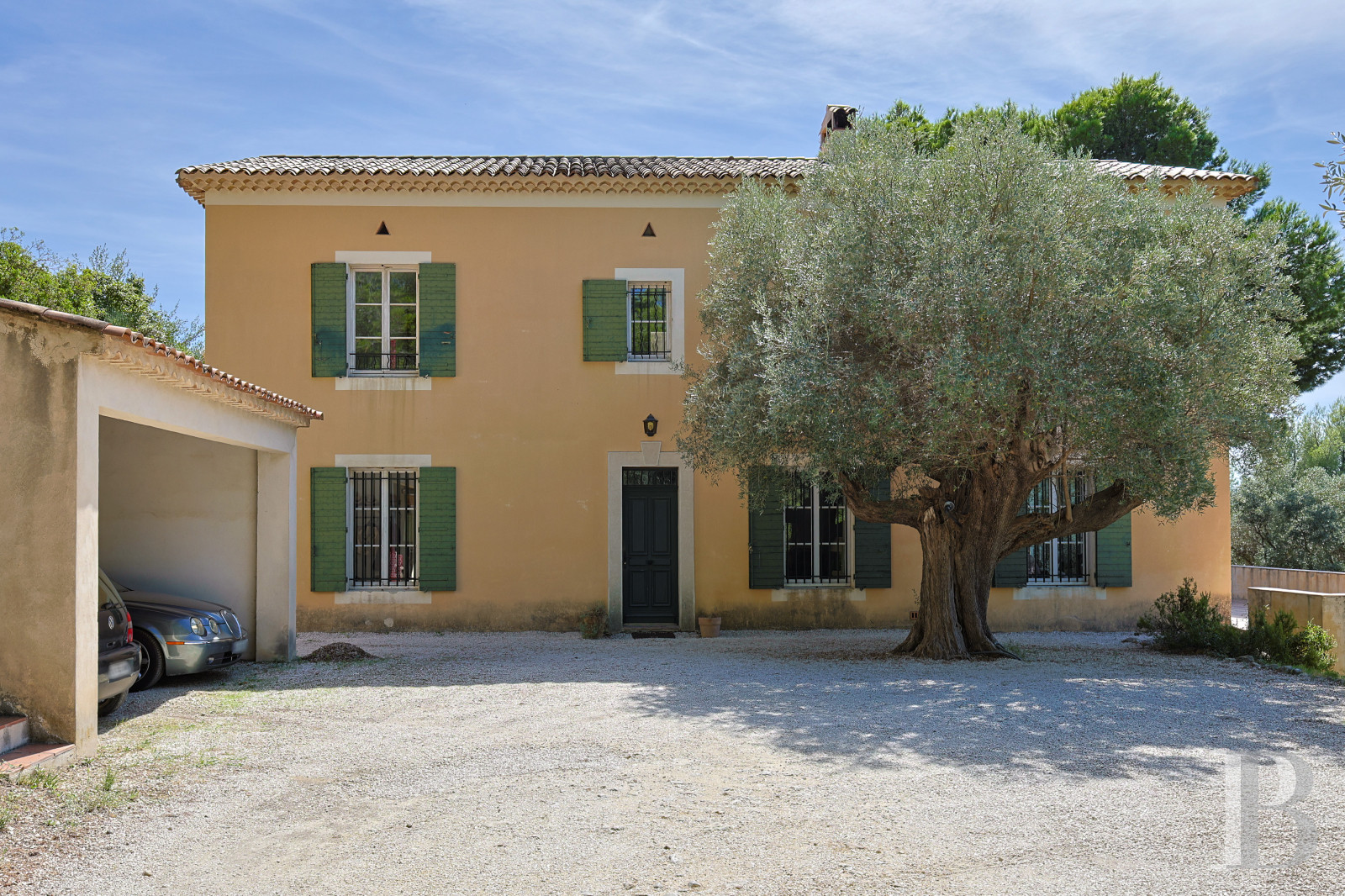 Un abri couvert situé dans la cour face à l'entrée permet de garer deux véhicules. Côté sud, un préau couvert de tuiles canal, d'environ 40 m², borde la terrasse dans sa partie orientale et permet d'organiser des réceptions ou des repas à l'abri du vent comme du soleil.La piscine, le pool house et le parc