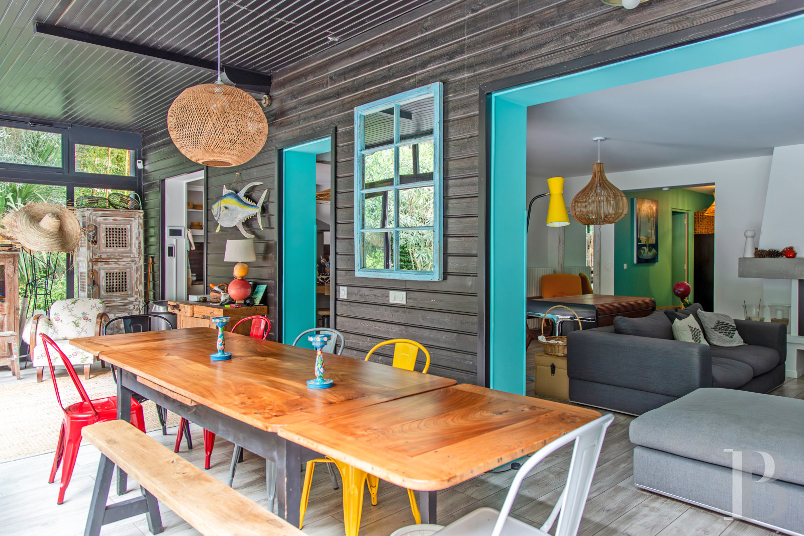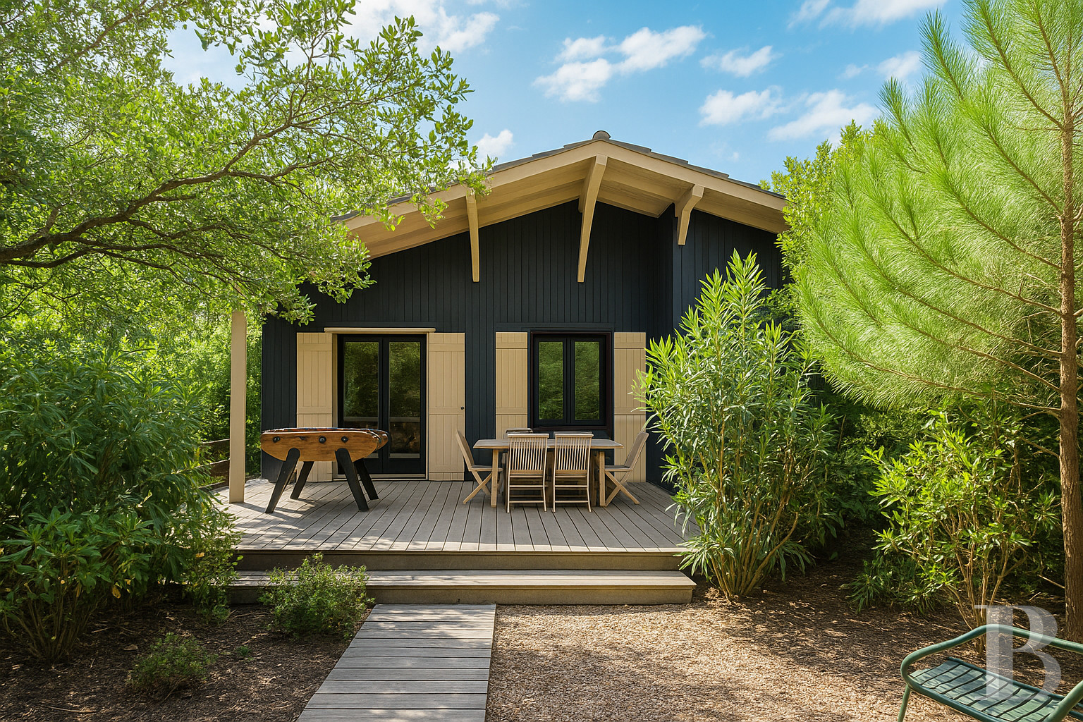 Ici, l’esprit du cap Ferret se révèle dans toute sa justesse : une architecture en bois sobre et élégante, qui s’efface devant la majesté de la pinède, le parfum des embruns et la douceur de la lumière. Conçue pour accueillir plusieurs générations sous un même toit, la villa invite à un art de vivre tourné vers la convivialité, les longues journées d’été partagées autour de la piscine ou à l’ombre des arbres, mais aussi les séjours plus intimes à la faveur des saisons calmes. L’équilibre entre nature et habitat, entre simplicité et confort, en fait une demeure fidèle à l’âme ferret-capienne, à imaginer comme un lieu de villégiature ou une résidence principale inspirée.