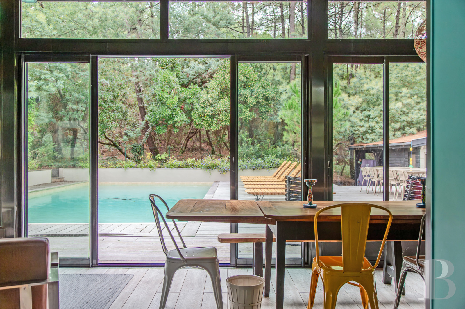 En Gironde, à l’extrémité de la presqu’île du cap Ferret, le paysage se partage entre les rives du bassin d’Arcachon et les embruns de l’océan. Les villages ostréicoles, les jetées discrètes et la grande pinède composent un environnement singulier, à la fois maritime et forestier. La maison est située dans un emplacement privilégié, à l'abri des regards et en lisière de la forêt de pins.