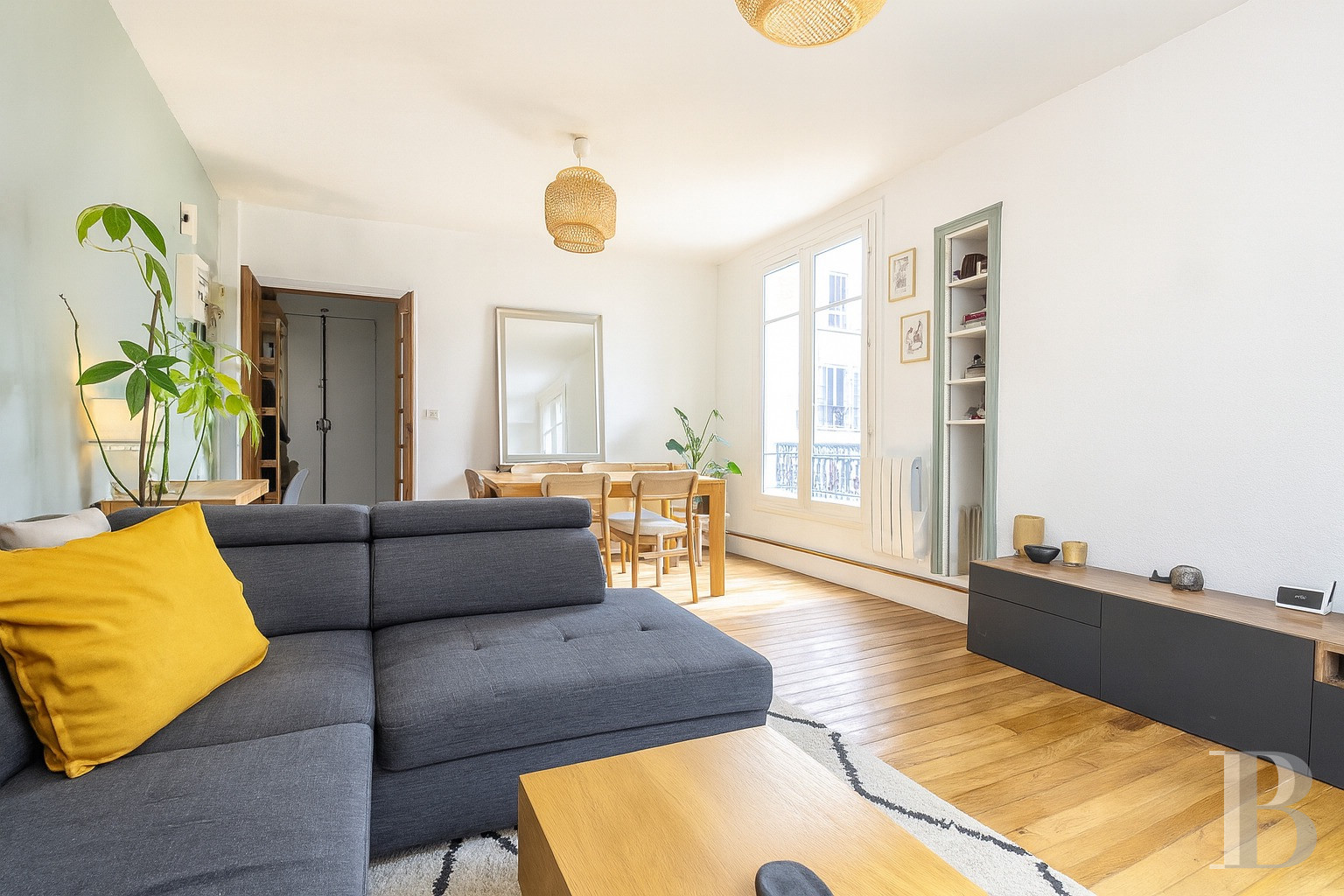 Idéalement placé rue de Bretagne, dans le Haut-Marais, l’appartement occupe une adresse emblématique du 3e arrondissement de Paris, recherchée pour son caractère et son ambiance. À quelques pas du marché des Enfants-Rouges, le plus ancien marché couvert de la capitale – ouvert en 1615 –, le quartier abonde en commerces de bouche, en cafés typiques, en galeries d’art et en boutiques de créateurs, et présente un cadre de vie à la fois authentique et contemporain. La rue de Bretagne tire son appellation du marché du Haut-Marais, qui était situé autrefois à la frontière de la province de Bretagne, d’où arrivaient les charrettes chargées de produits régionaux. Au 19e s., elle fut également l’une des premières rues parisiennes à être équipée d’éclairage au gaz, symbole de la modernité de l’époque. Le bien se trouve à proximité des stations de métro Filles du Calvaire – desservie par la ligne 8 – et Arts et Métiers – avec les lignes 3 et 11.