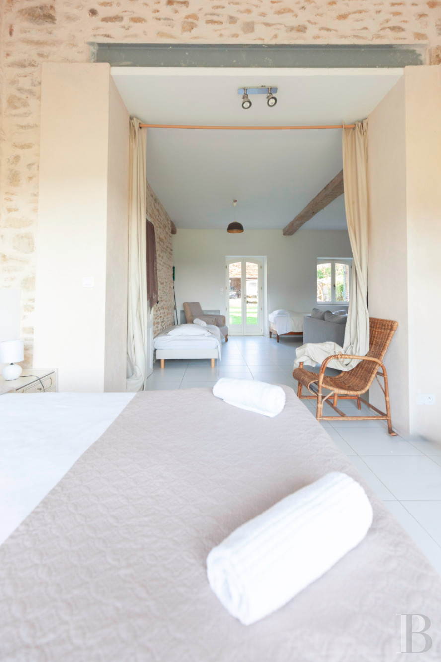 Un élégant château qui, avec sa silhouette et son ornementation typiques du 18ᵉ s., revient d'une longue et funeste traversée, assorti de dépendances aménagées ainsi que de communs utilitaires à l'allure campagnarde et bourguignonne. Dans le noble logis, les boiseries avaient été arrachées, comme les parquets et les cheminées. Très attachés à la demeure, ses occupants actuels ont su lui redonner une finesse certaine, toute contemporaine, et une vie digne de son rang. L'activité économique qu'abritent l'ensemble architectural et son domaine verdoyant, très bien desservis, est fructueuse. Tout est d'ores et déjà en place, en somme, pour poursuivre l'aventure et continuer à recevoir une clientèle désireuse de découvrir les richesses d'une région viticole et touristique renommée.