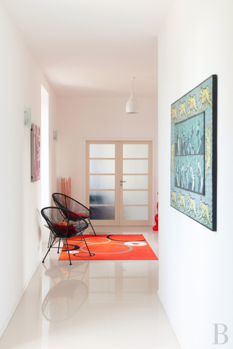 L'escalier, maçonné et peint, débouche sur un palier distribuant une première chambre, une porte donnant accès aux greniers et une salle de bain indépendante avec toilettes. Dans son prolongement, un ample dégagement dessert une partie aménagée en suite, comprenant trois chambres, une spacieuse salle de séjour, trois toilettes et deux salles d'eau. Ladite pièce de séjour occupe le cœur du niveau et commande deux de ces chambres. La baie centrale en forme de niche donne un caractère scénique au paysage verdoyant qui se dévoile au loin. La dernière chambre de la suite et du niveau, spacieuse et associée à une pièce de douche, est indépendante et très lumineuse.