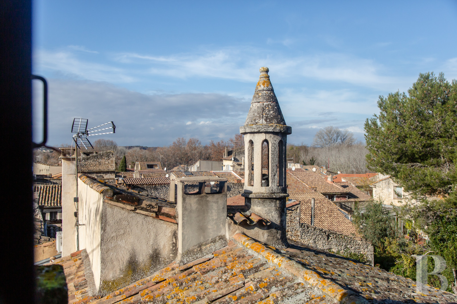 À la couvre-marche de l'escalier en vis, une porte ouvre au nord sur le minaret de la cheminée sarrasine et un espace délimité par deux poutrelles métalliques. Il n'est pas improbable d'y projeter la pose future d'une terrasse lancée à l'assaut visuel des toits du village et de la campagne gardoise dans le lointain.