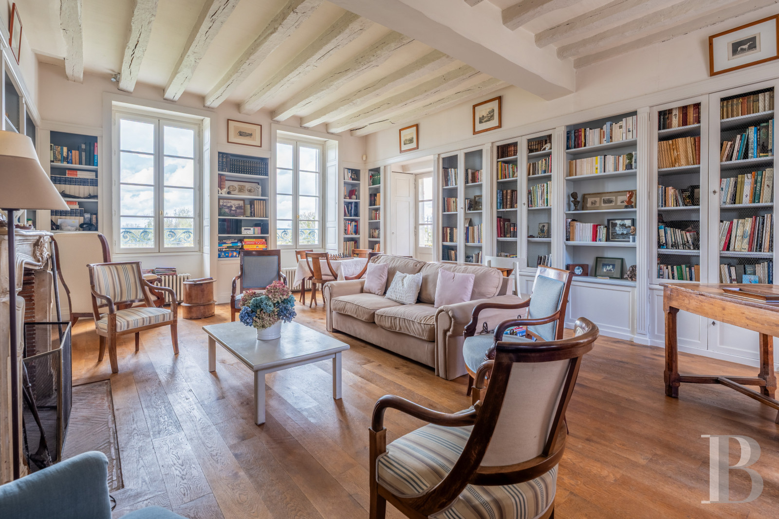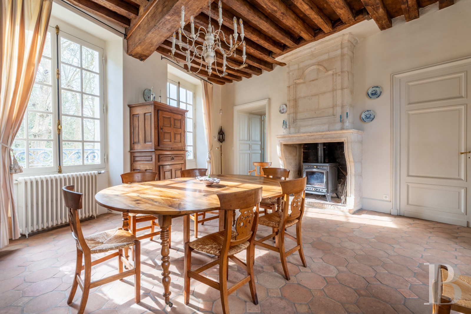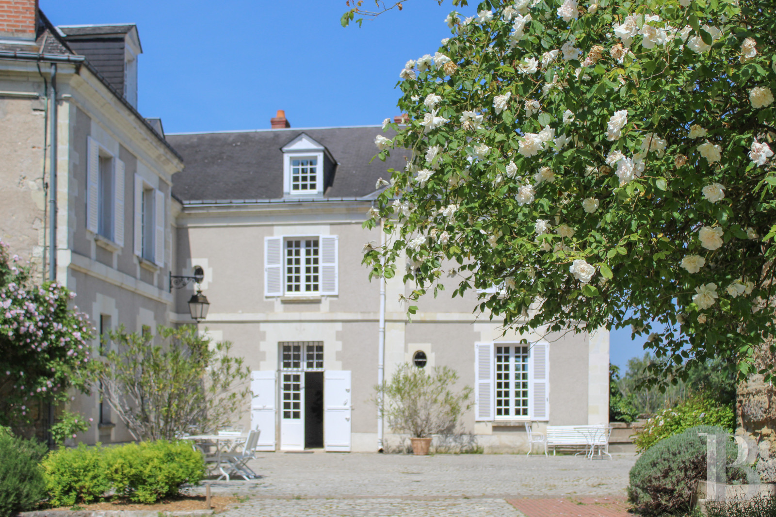 À l'abri de son parc arboré, en position dominante, une élégante propriété aux airs de château de la Loire. Dans la cour pavée, l'atmosphère du logis évoque aussi celle d'un hôtel particulier, avec son architecture classique et son jardin à la française. Les occupants actuels ont réalisé d'importants travaux et ont entretenu la demeure avec soin. L’intérieur, particulièrement lumineux, est confortable et de bon goût. Le parc, sur plusieurs niveaux, ménage des espaces variés, pour l’agrément des parents comme pour celui des enfants. L'ensemble est prêt à accueillir une famille nombreuse, des amis ou une activité de chambres d’hôtes et de gîtes dans les différentes dépendances.