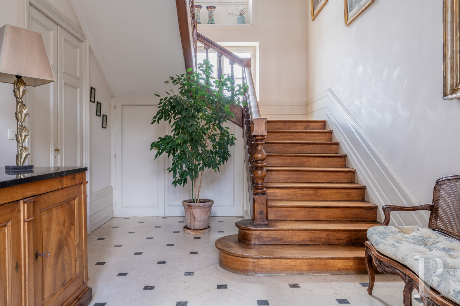 Le large escalier tournant à trois volées droites, en bois massif, résulte des modifications apportées à la demeure par le célèbre architecte Auguste Perret dans les années 1920. À l’étage, un palier dessert cinq chambres, chacune avec cheminée et parquet. Trois salles de bains et des toilettes sont aménagées à ce niveau. Les baies côté rue sont à double vitrage. Un escalier droit, moderne, monte à l'étage supérieur.