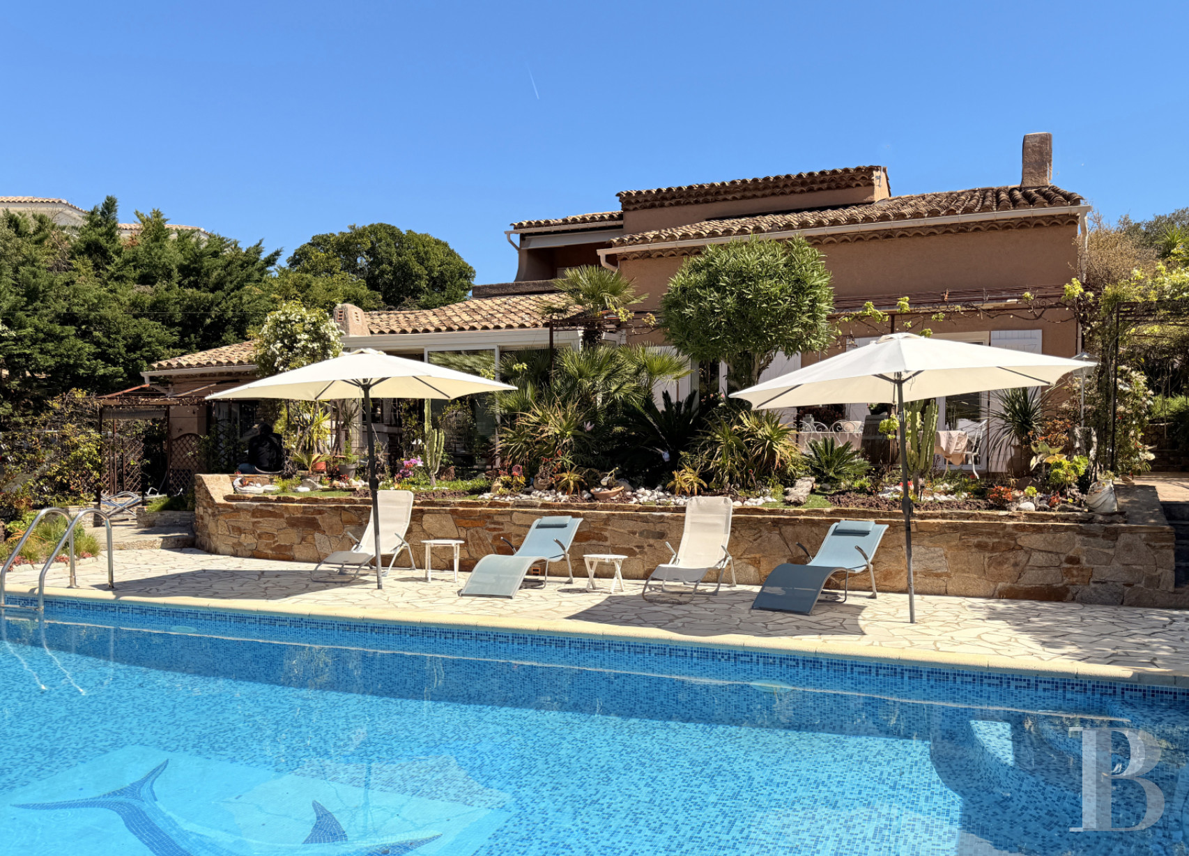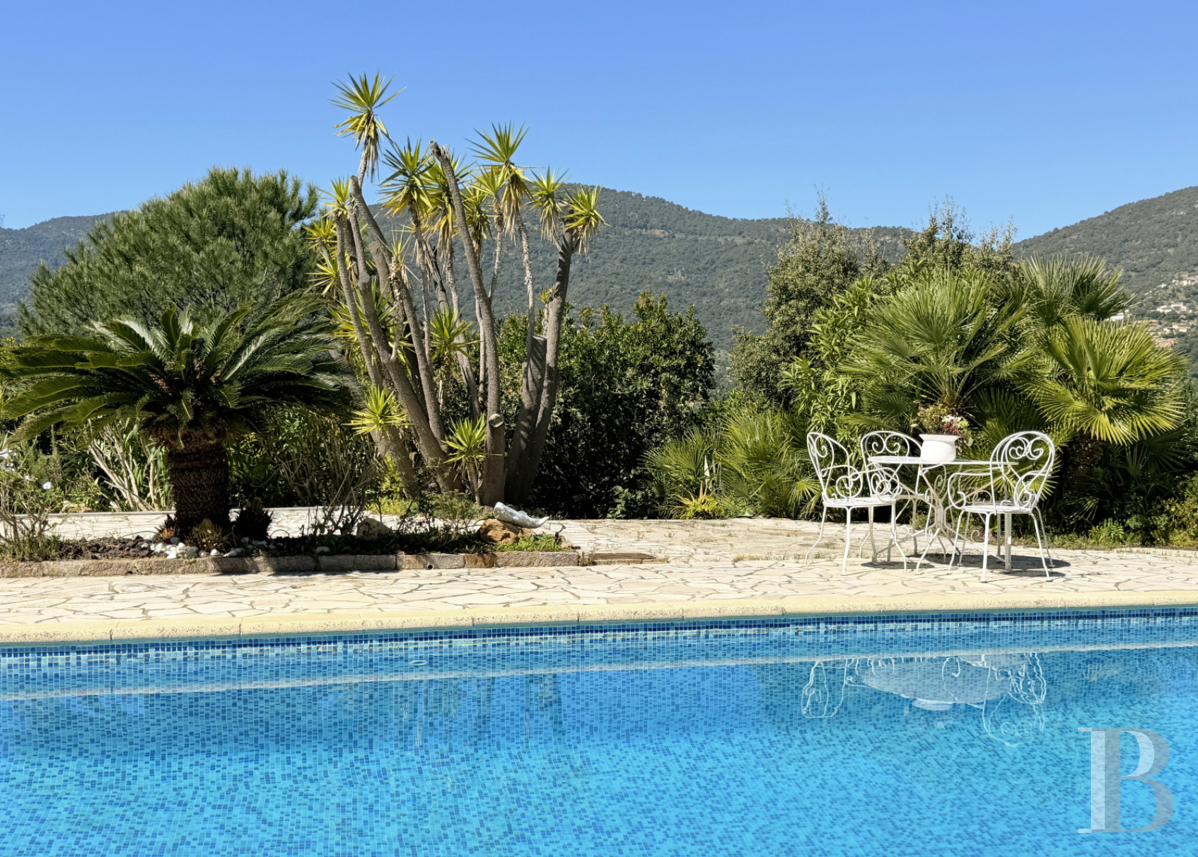 D'une superficie de plus de 1 500 m², harmonieusement composé d'arbres, arbustes et autres plantes d'essences méditerranéennes (laurier-rose, cactus, yucca, agave), il protège la villa du voisinage. Un forage (profond de 110 m) avec purificateur d'eau alimente le système d'arrosage ainsi que la piscine au sel (de 10 x 4,5 m). Un local semi-enterré de quelque 25 m² permet d'entreposer mobilier de jardin, matériel de jardinage et équipements de la piscine. La vaste terrasse entourant la piscine, en dallage clair de pierre naturelle, forme des espaces ensoleillés et ombragés sous la ramure du grand palmier. La vue très dégagée à l'ouest sur les collines ménage un aperçu mer à l'horizon, dans un cadre aux airs d'été perpétuel.Our opinion