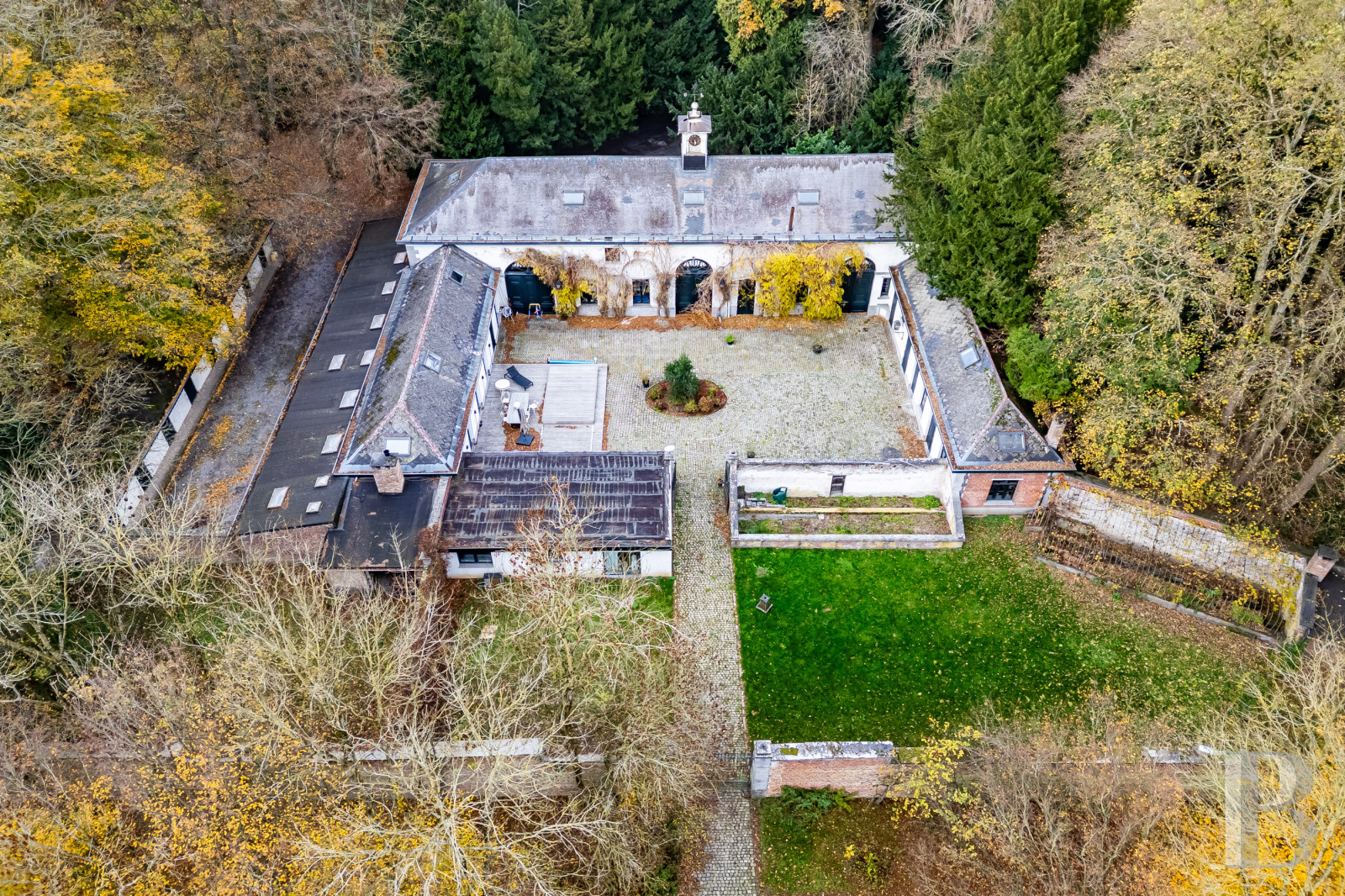 a castle and its outbuildings on a 36-hectare estate with a pond.