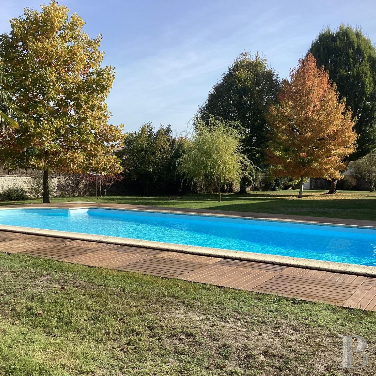 The swimming pool lies between the outbuilding and the house near the dovecote. It enjoys maximum sunshine and is set in a terrace of exotic timber.