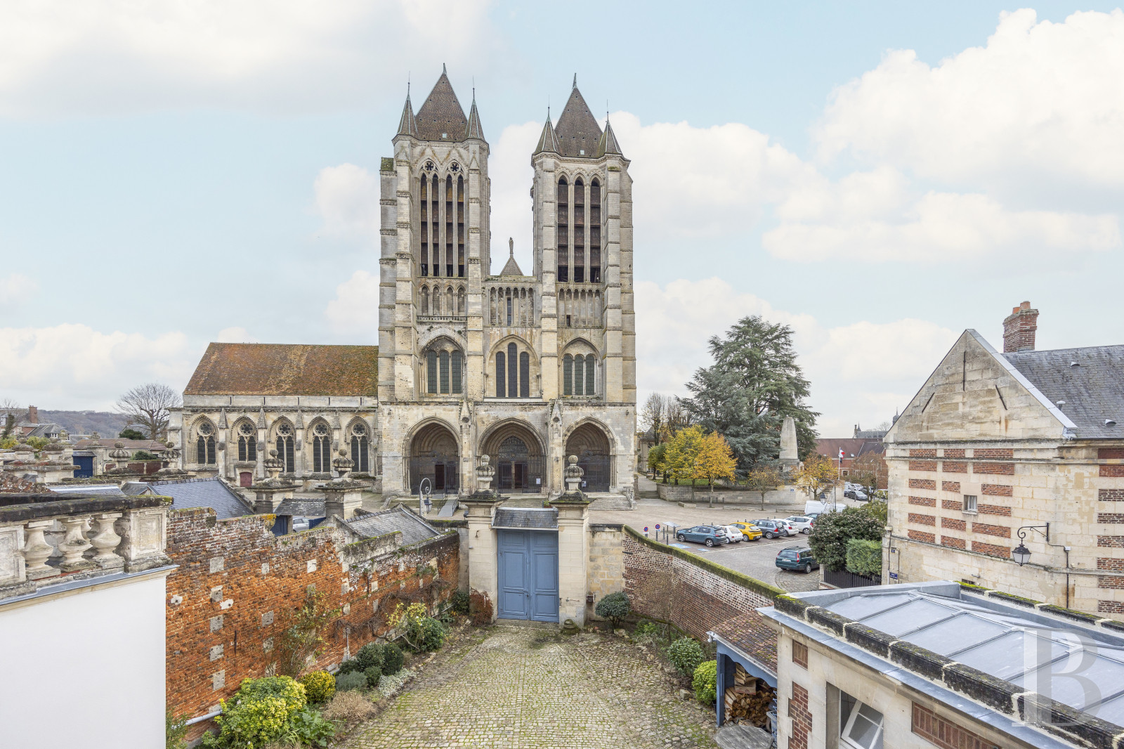 Its tri-partite portal and two spires with three tall, pointed arches lend the building its full magnificence. Only the parvis separates the impressive edifice from the property, which is in line with the 17th-century canons' houses. While the canons had lived on the site since the Middle Ages, a fire destroyed the medieval quarter in the 17th century, which was then rebuilt in a classical style. Today, this is a listed historic site.