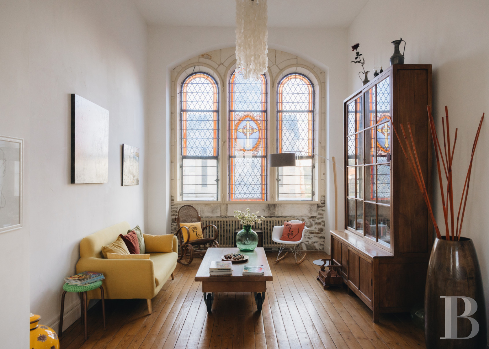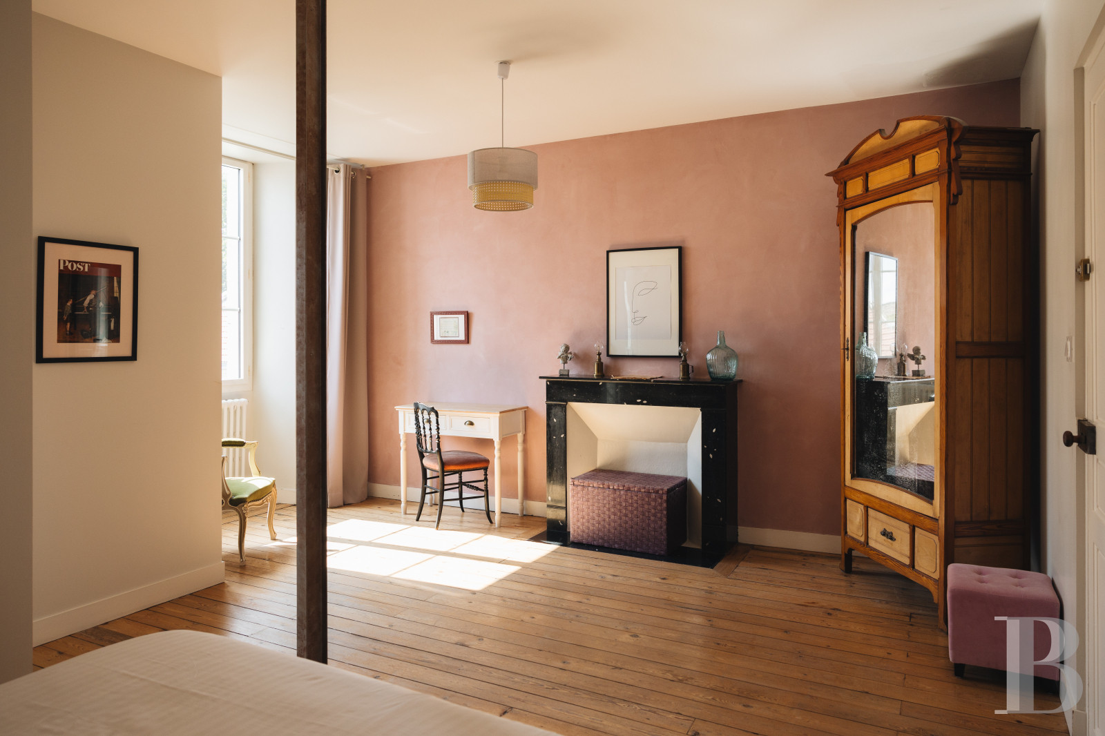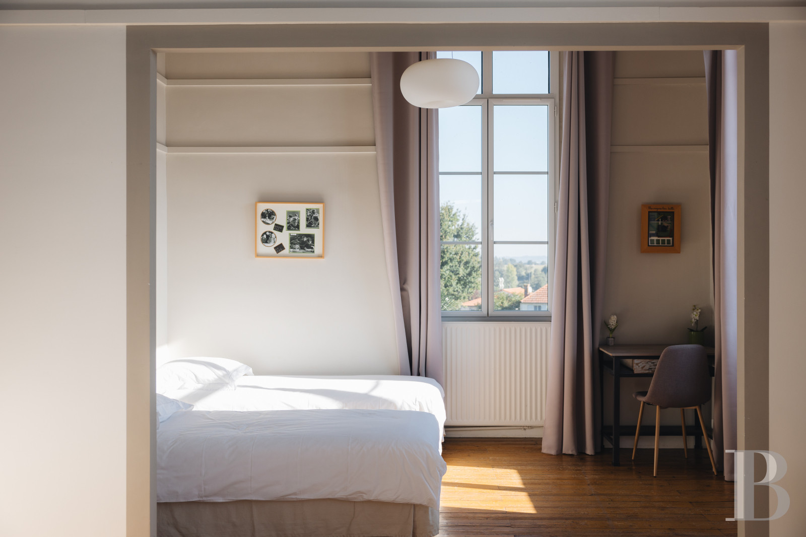 The staircase leads to the centre of the first floor. Here, a former chapel has been transformed into a lounge/library, lit by three stained-glass windows. A long corridor leads to four guest rooms on either side, set up in the nuns' former bedrooms and accommodating two and five people. The first bedroom - for three people - overlooks the main courtyard. It has a study area and a bathroom with bath, washbasin and toilet. The second bedroom, designed for two guests, has a similar layout and is en suite with a walk-in shower, washbasin and toilet. The third bedroom, a family room, can accommodate up to five people. It comprises two sleeping areas, a study area and a shower room with a walk-in shower, two washbasins and separate toilet. Situated to the west of the house, it overlooks the swimming pool, terrace and garden. The fourth bedroom, which sleeps four, has a similar layout to the family room. Access to the attic is possible from the corridor. The floors are parquet, while the paint and woodwork in all the rooms are in perfect condition. The rooms and public areas are furnished, equipped and decorated. Bed linen and towels are also provided in the guest house.