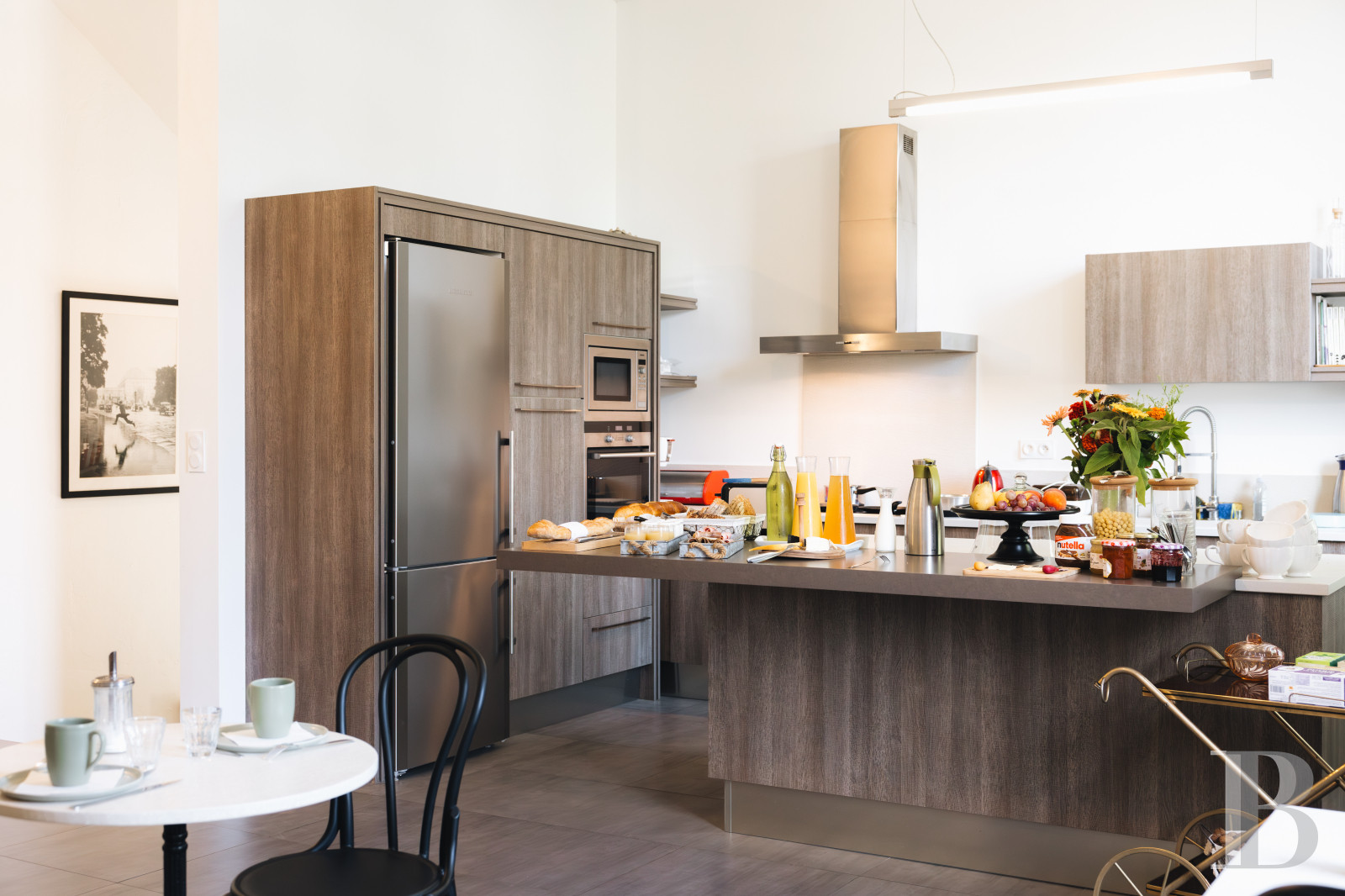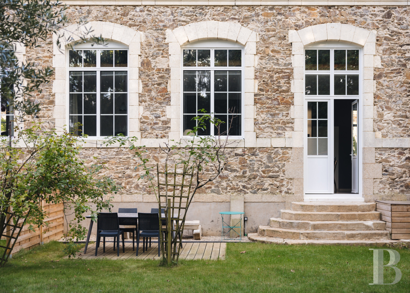 Located in a wing of the building, it covers an area of around 122 m² and is completely separate from the gîtes and guest rooms. It comprises a booking office with a mezzanine storage area, two children's bedrooms, each with a mezzanine, and a master bedroom with bathroom and wardrobe. At the end of a corridor, a living room of around 50 m² opens on to the outside. A glass roof provides a direct link to the garden, while a patio door leads to a second landscaped area with tables and garden furniture. A reception room includes a fully furnished and equipped open-plan kitchen. The whole house has a home automation system. This private area has a second bathroom and separate toilets.