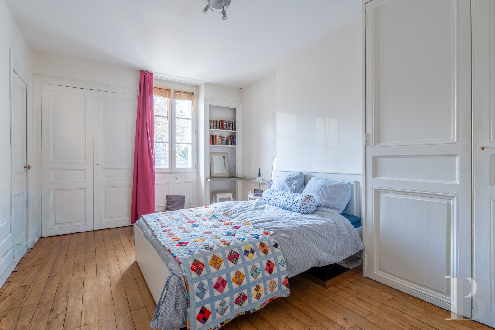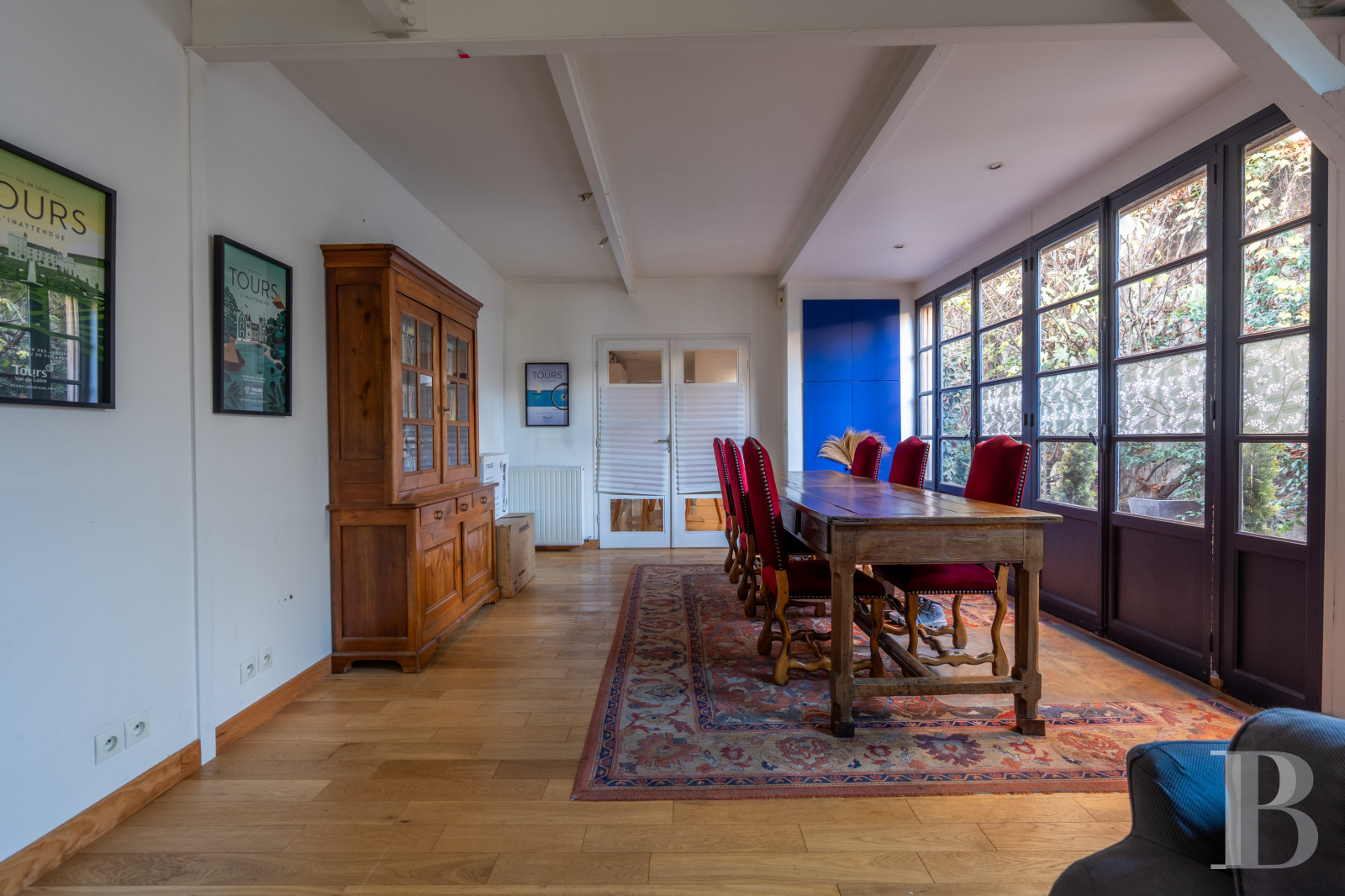 This elegant townhouse with a delicately sculpted facade is located in a central district and residential street of Tours. The edifice is an invitation to push open its tall carriage gate doors and discover the opulently decorated interior as well as the annexes, surrounding a foliage-rich courtyard and small garden. The house boasts remarkable 19th-century decorative features combined with more modern furnishings and fixtures. This residence promises an easy-going lifestyle as well as functionality and could be ideal for a family or a self-employed professional. The address is ideally located, near to the shops and the railway station, from which Paris can be reached in one hour.