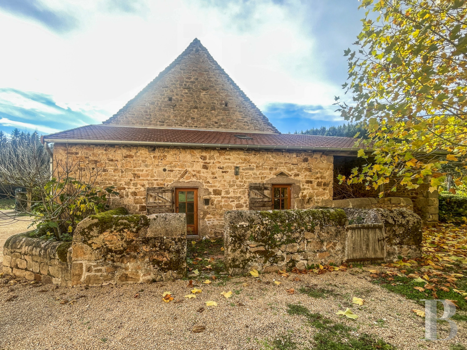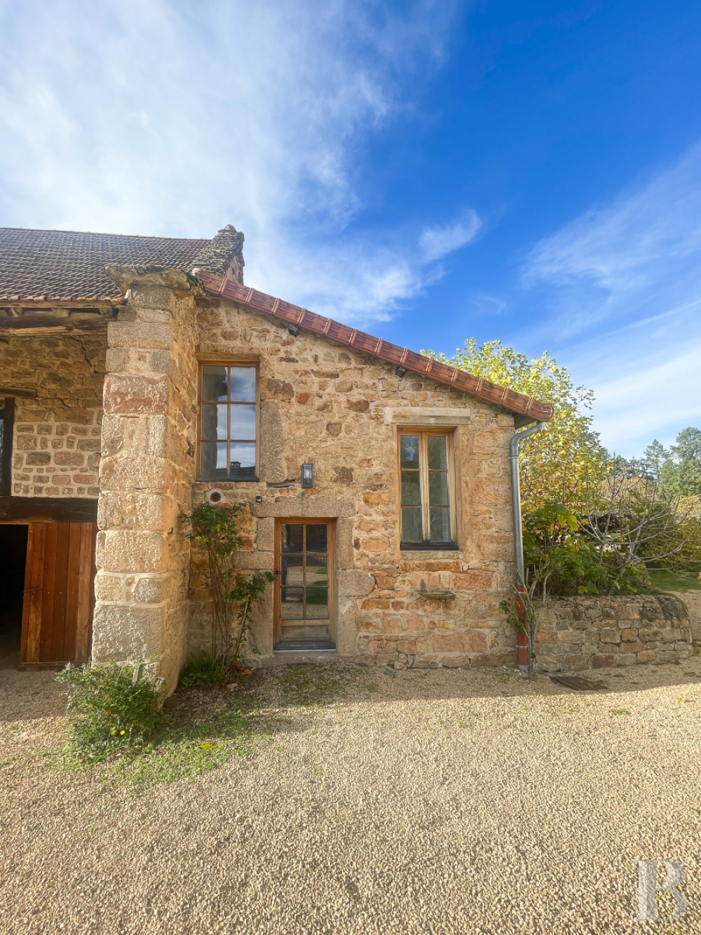 Formerly used for farming, a long stone building at the entrance to the estate marks the boundary of the courtyard. It has a tiled roof, the western section of which has recently been refitted. The old barns have just been converted into a bright studio apartment with a small kitchen and dry toilet. The stables are now used as a workshop and storage area for the property's maintenance equipment. At the far end of the building, a room with long windows, disabled access and toilets is heated by a wood-burning stove. Finally, the first floor has been converted right up to the ridge into a vast reception or exhibition room. A carport has been discreetly installed at the entrance to the estate, while on the parkland side, a building provides storage for swimming pool equipment and, on the meadow side, shelter for the horses.