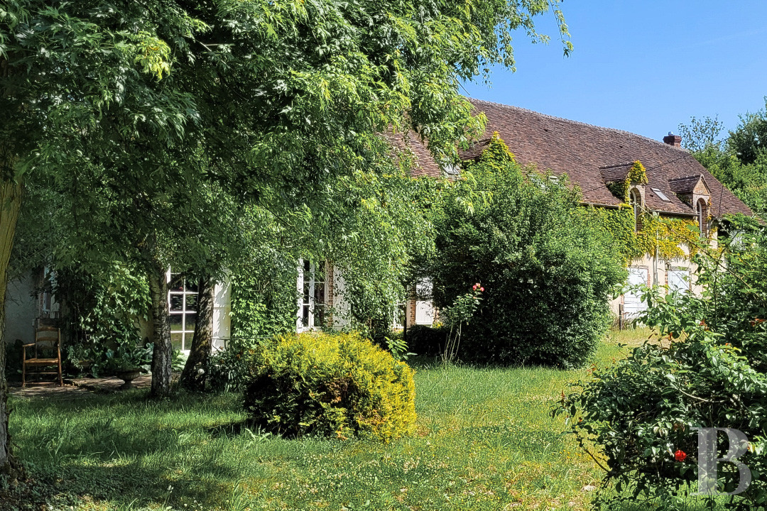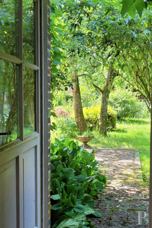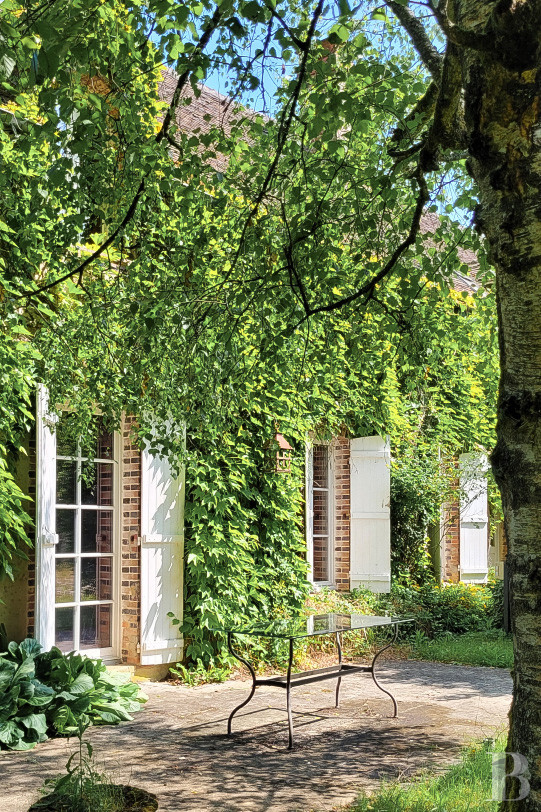 Extending over a little more than half a hectare, the property’s level garden has been divided into several different spaces, each with their own character. Around the courtyard and between the buildings that border it, are a pond, a creek traversed by a small wooden bridge and lawns planted with a number of shrubs, while tall trees provide their welcome shade for the courtyard in spring and summertime.