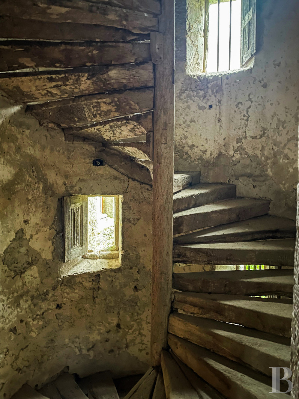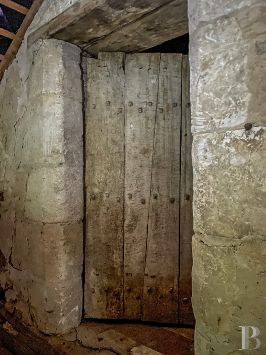 It can be reached by the wooden staircase in the tower, which is dotted with small windows fitted with interior shutters. The 120-m² surface is split into three large rooms, which all still boast their period decor: fireplaces, terracotta floor tiles, exposed beams, as well as half-timbered and cob walls.