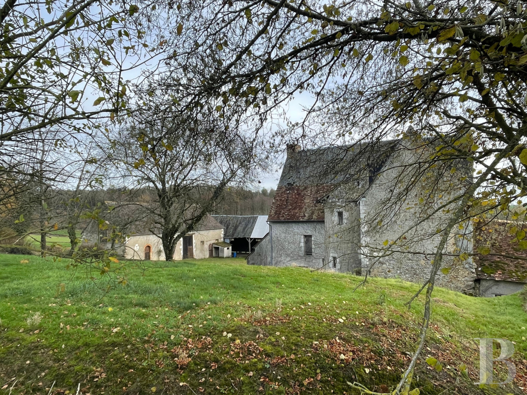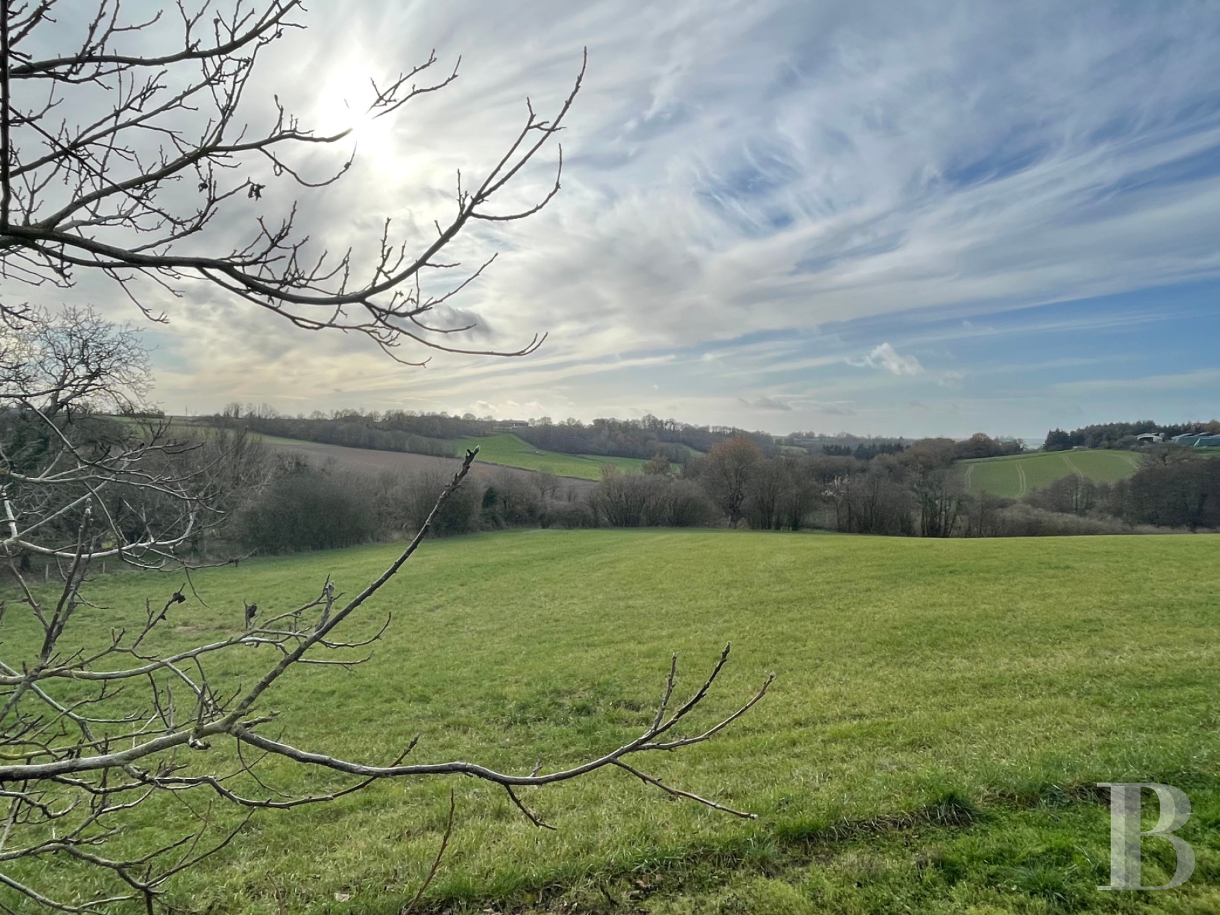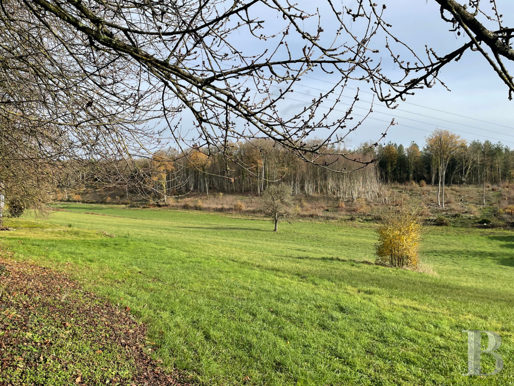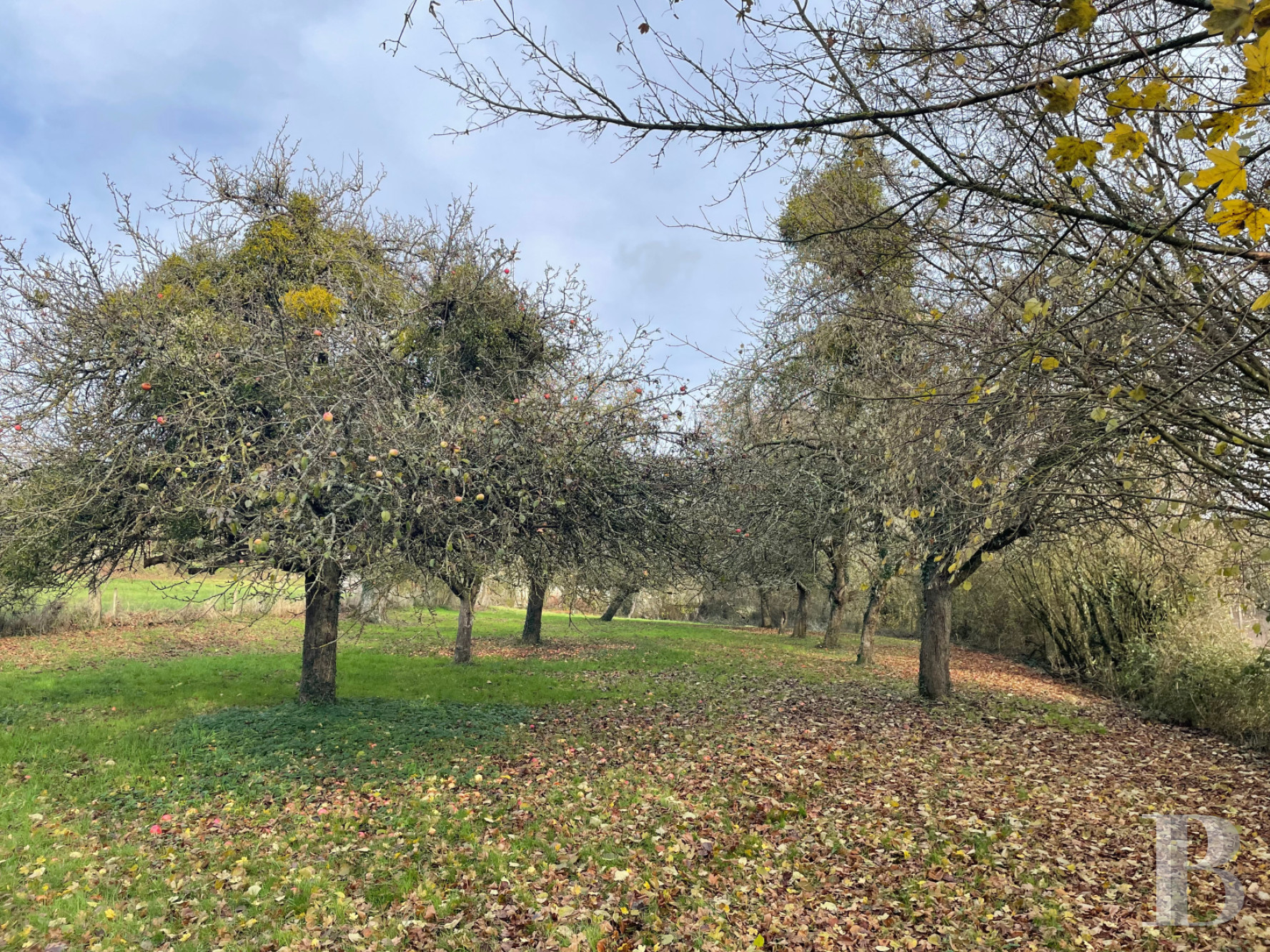 More than 24 hectares of meadows surround the property and will no longer be occupied by October 2026; indeed, 15 hectares are already available. A small wet zone can be found towards the bottom of the grounds. To the west, there is an apple orchard well protected by hedges and standing virtually on the hillside, while a wood borders the rear of the estate to the north. To the east, a 1-hectare coppice of chestnut trees has just been clear felled, while there some oaks remain.
