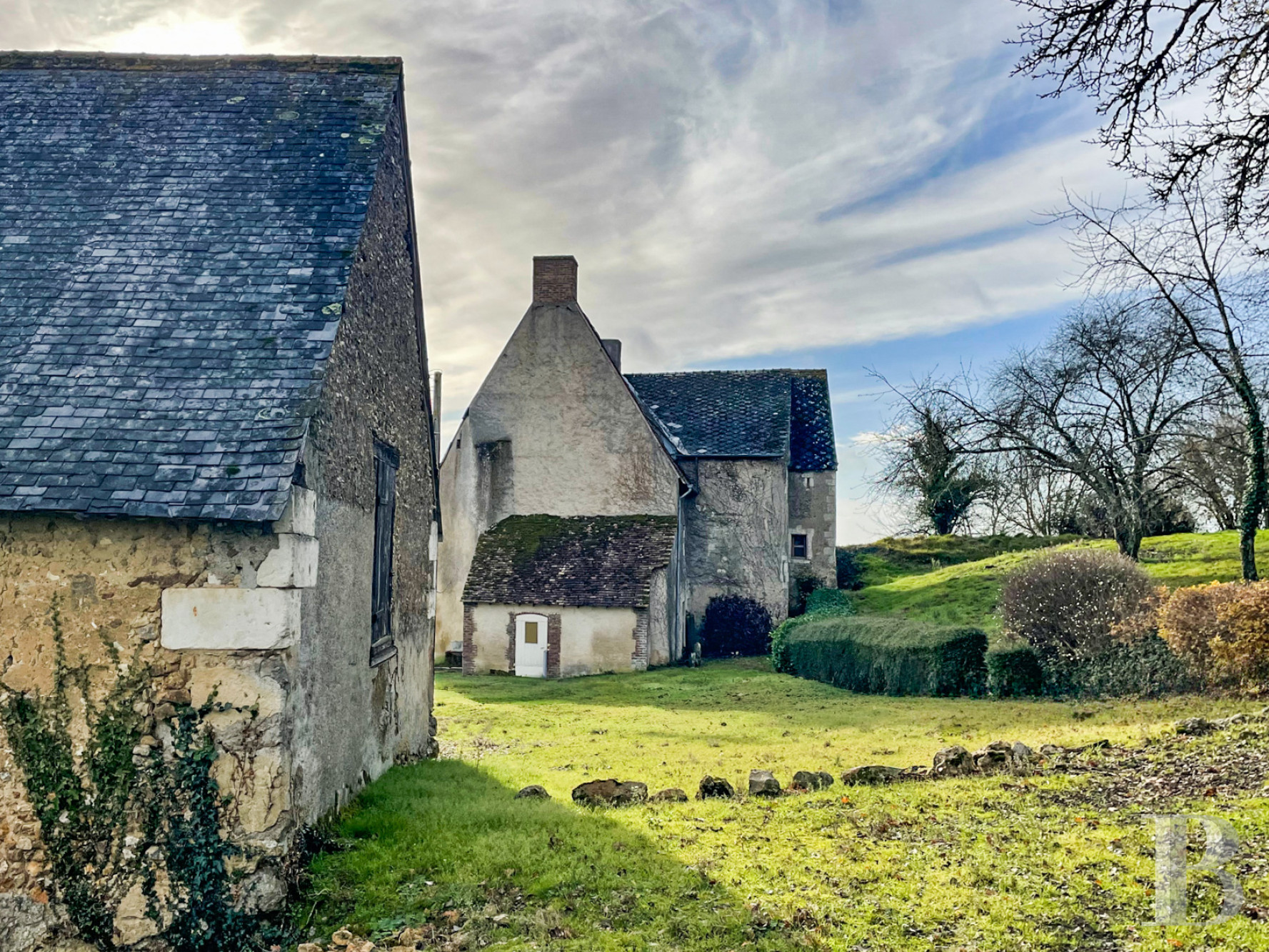 In a secluded corner of the Sarthe countryside, where the limestone plateau gently slopes down and on which streams to flow towards the tall trees of the Bercé forest, stands a venerable 15th-century stronghold requiring restoration. In addition to its emblematic chateau, the estate forms a veritable landscape within itself, made up of a mosaic of thriving hedges, long-standing orchards and arable land. The property will not fail to delight an enthusiast of old stones, nature and history. This address, which is not listed as a historical monument, is situated between Le Mans and Tours, away from any hustle and bustle but near to main transport routes and can be seen from a passing country road. For restoration of the exterior, it could benefit from grants from the French heritage foundation.