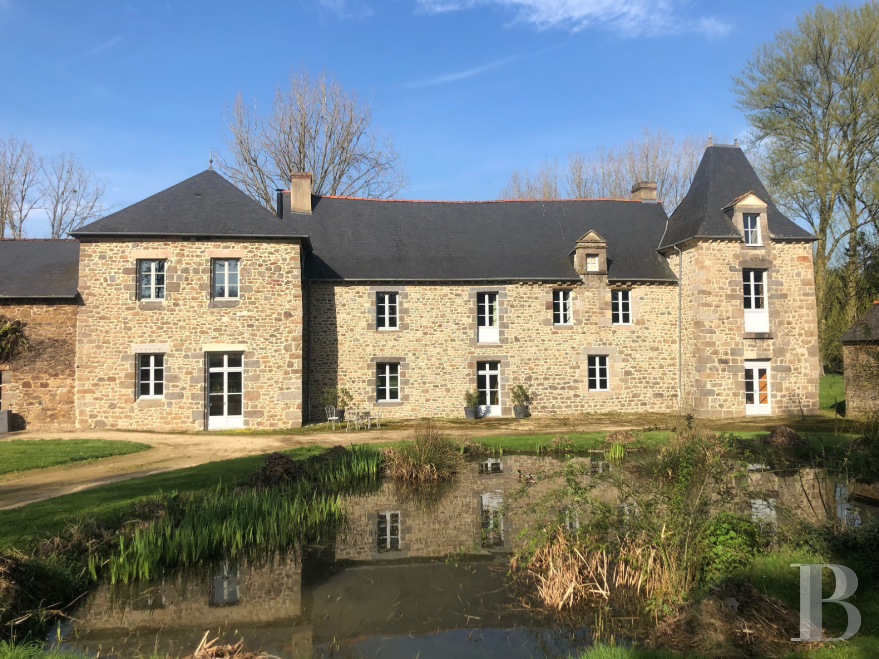 The manor house lies between the charming French cities of Rennes and Saint-Malo in Brittany. It is located just outside a vibrant town and is surrounded by calm countryside that is appreciated for its canals, woods and lakes. You can get to the property easily. Major roads take you to the beaches of Saint-Malo in 40 minutes. And Rennes city centre is 20 minutes away. From the train station in Rennes, you can reach Paris in 1 hour and 30 minutes by rail.