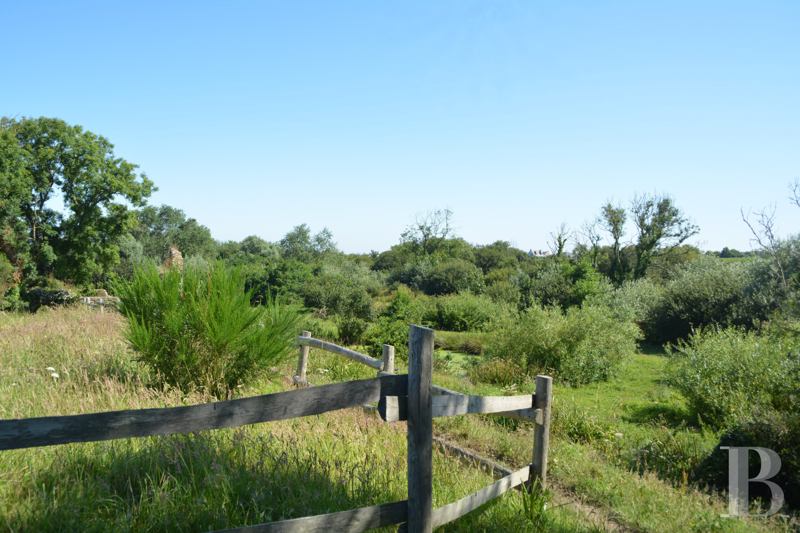 Perfectly maintained grounds surround the manor house and outbuildings. The entrance opens onto a large lawn to the side of the main building, where vehicles can be parked. You see the courtyard as soon as you enter the grounds, surrounded by the buildings and closed in by the manor house, the walled kitchen garden and the back garden. Old paving stones line the main dwelling, which is flanked by a gravelled area. A grassy area, planted with bushes and flowering plants, surrounds the round granite well. Numerous shrubs and plants brighten up the courtyard. Grassed areas surround all of the outbuildings. Access to the mill is on the side of the manor house, between the coach house and the manor house. At the back of the manor wing, a terrace has been built to create another independent space. The garden has many flowers and is well maintained.