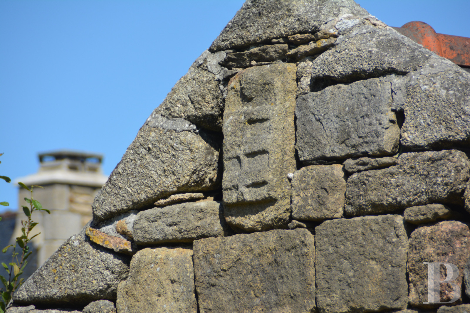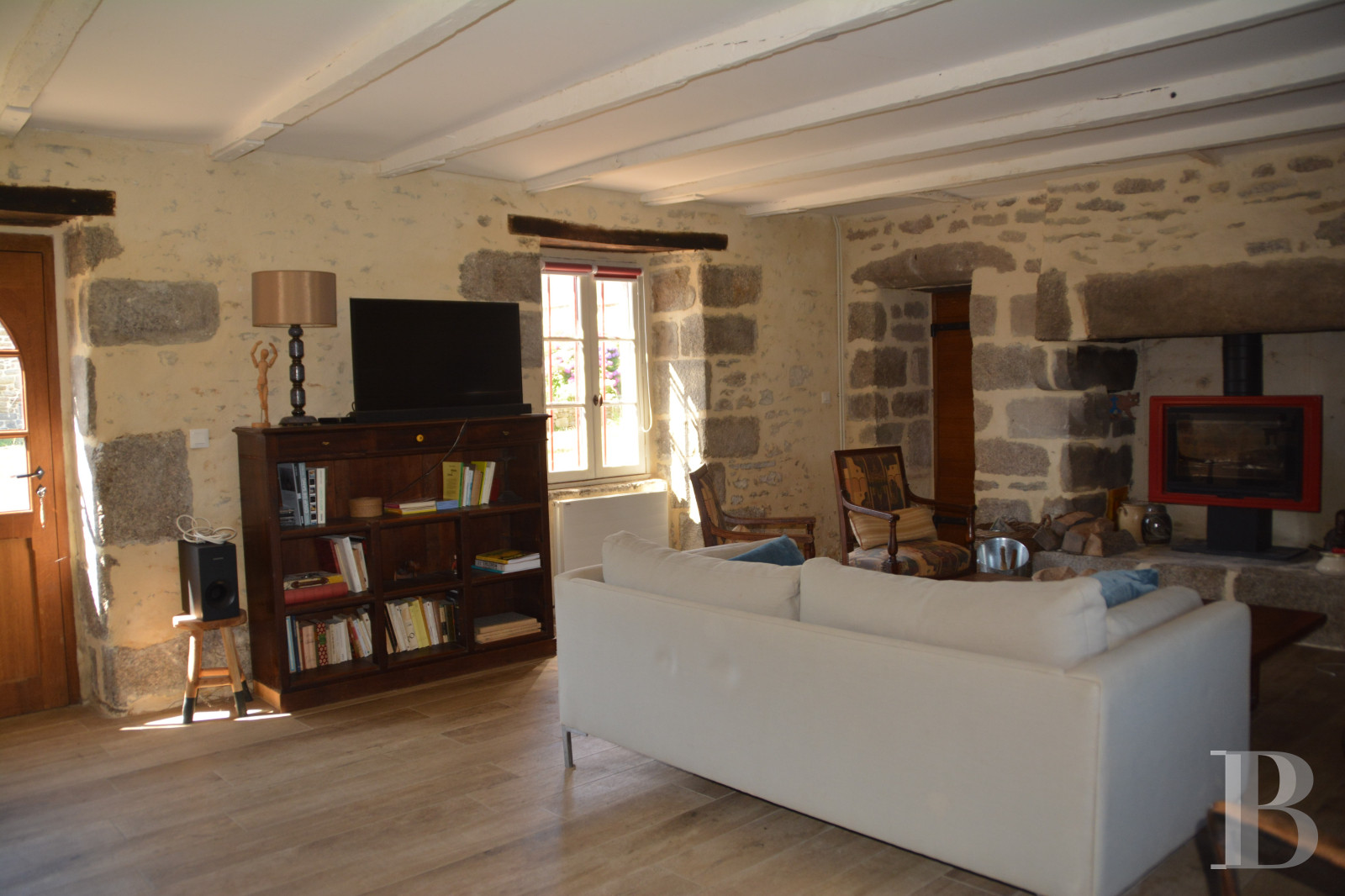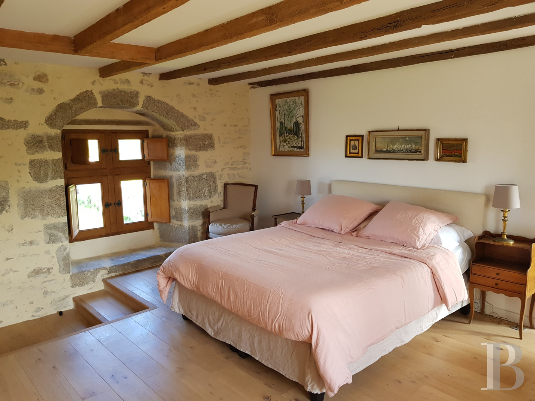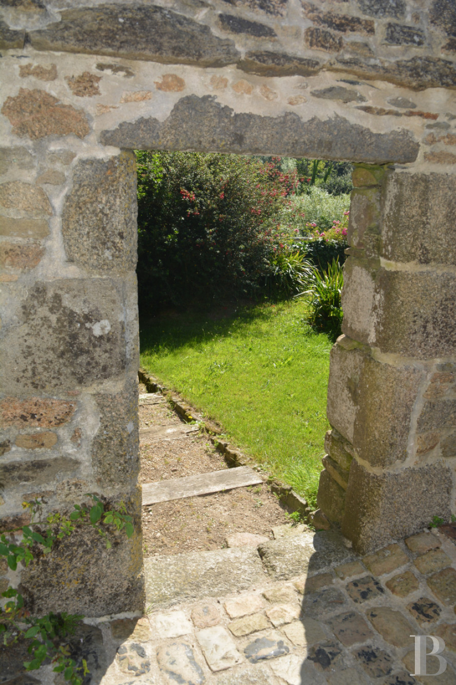 This is opposite the manor house, and has its own back garden. It is rectangular and built of granite rubble. It is the former stables. The gable roof is built of slate. The façades feature a large arched window and bull's eye window on the gable, and three windows at the back. The house has a vast room, which is used both as a lounge and a bedroom, with light-coloured plastered walls and a cathedral ceiling. A wood-burner has been fitted. On one side, a door leads to a separate, fully-equipped kitchen, and on the other side there is a shower room with a toilet. The 60 m² farmhouse has been completely renovated. It can be lived in or rented out immediately.