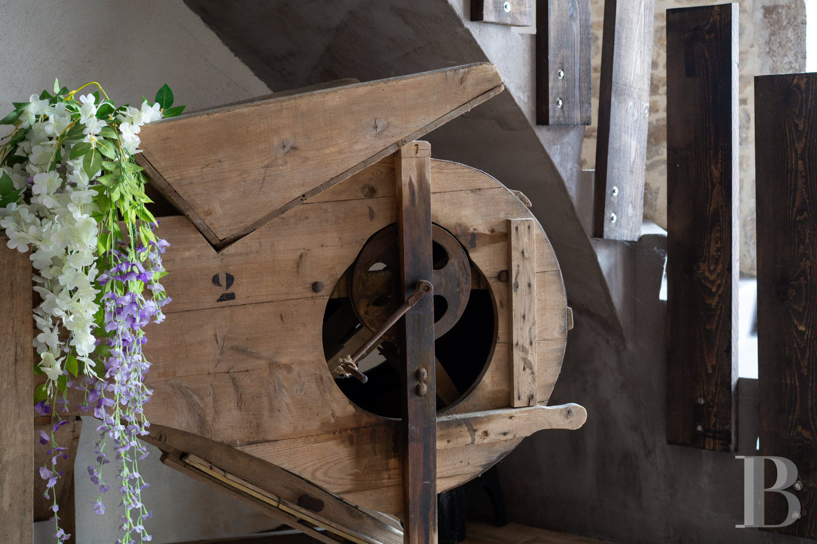 Vaulted and built out of stone, it is located under the main dwelling, and accessible via a stone staircase from the interior courtyard. Extending over a floor area of approximately 40 m², it features a beaten earth floor.