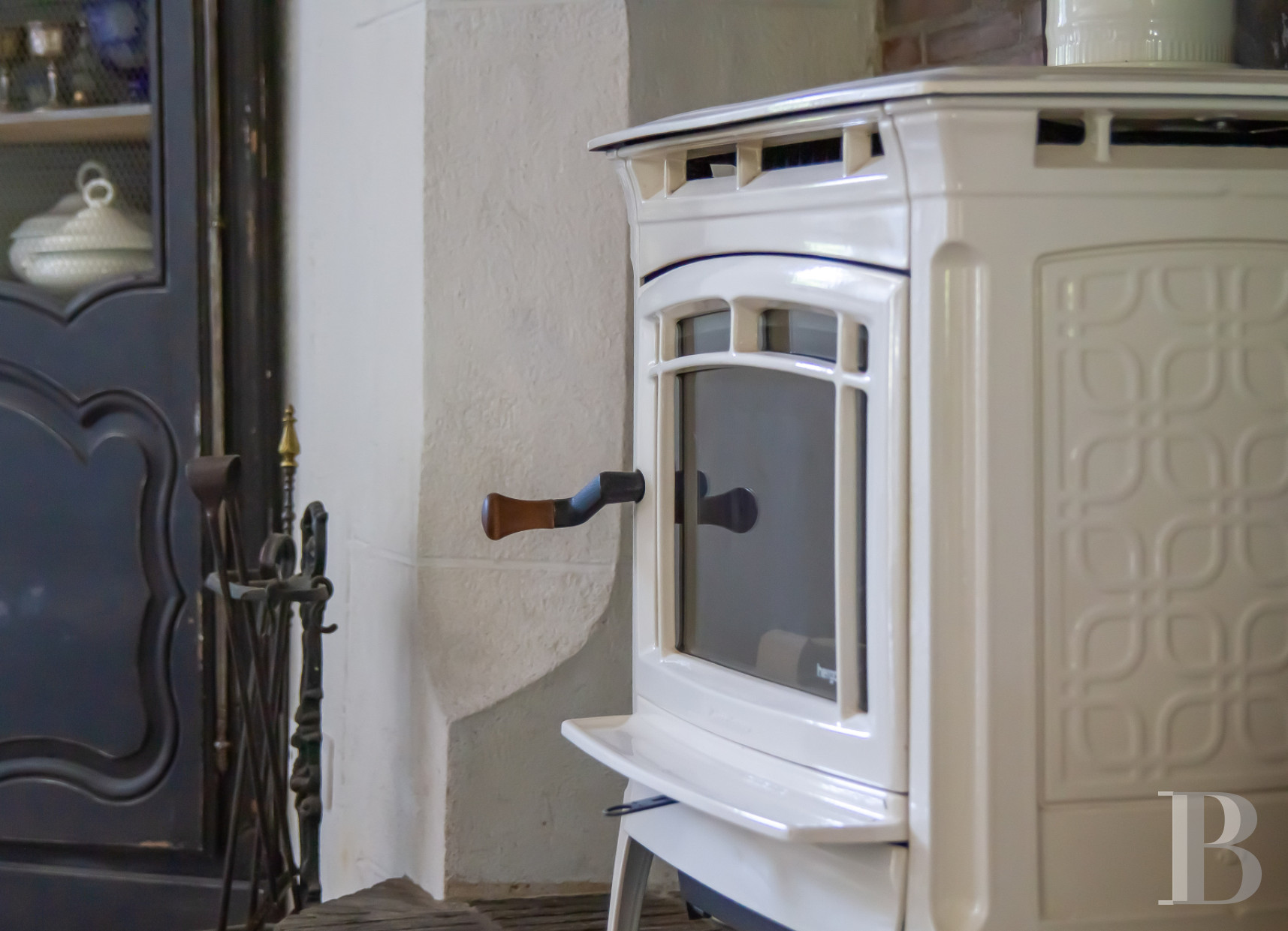 The landing provides access to two bedrooms, one of which has a bathroom with a bathtub, shower and lavatory, while the other one has a washbasin and lavatory. There is also a large tuffeau-stone fireplace in one of the bedrooms, which has a walk-in wardrobe as well.