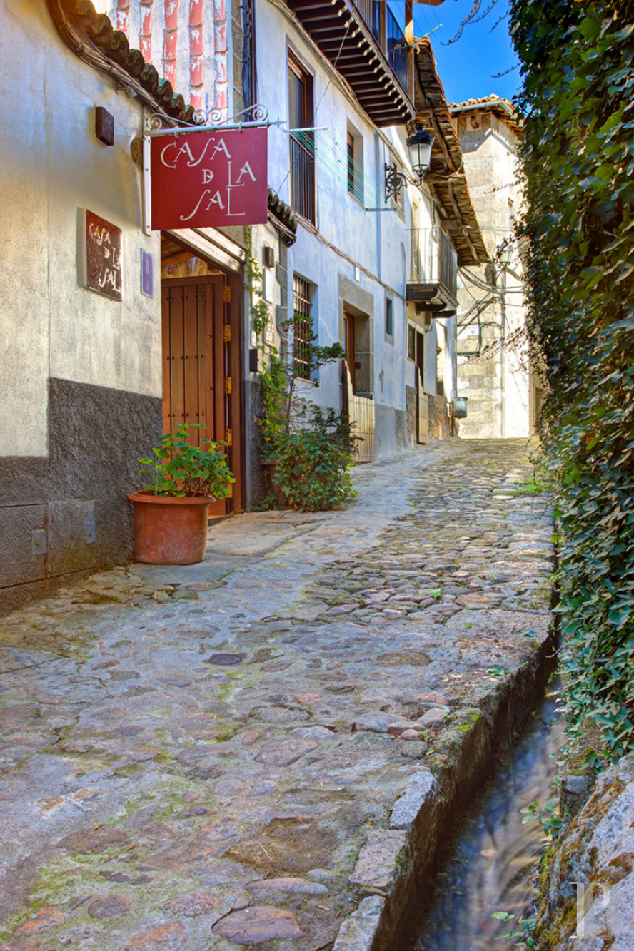 Candelario is one of those mountain villages where time leaves no trace, where every stone tells a story of necessity. Perched in the Sierra de Béjar, ranked among the most beautiful in Spain, it owes its character to a tradition: that of artisan pork butchers who, since the 18th century, have shaped its architecture. The house we are visiting bears witness to this. Built to house both a family and a craft, it combines thick walls, wooden galleries and large double doors, all designed to withstand the cold and allow meat to dry. The interior spaces still bear the mark of this dual purpose. Outside, rushing waterways line the cobbled streets. The whitewashed façades stand out against a wooded backdrop that rises to over 2,000 metres. The whole forms a setting whose authenticity lies less in its beauty than in its coherence. To buy here is to choose a place where history is not an argument but a tangible reality.