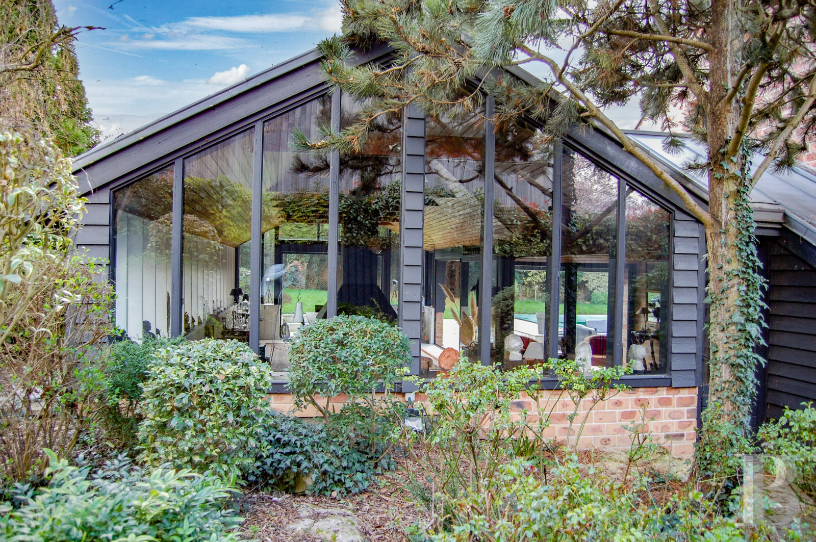This delightful home is a true gem, set back from a private road by a golf course in an unspoilt environment. The pleasant dwelling harmoniously combines modern architecture with nature. Its glazed wing is bathed in an abundance of natural light and recalls the spirit of country homes with sweeping landscape vistas. The building materials used, notably brick, timber and zinc, give the home a warm, timeless character. The vast reception rooms, extended outside with a terrace, pool and tree-dotted garden, invite you to enjoy an outdoor-oriented lifestyle according to the seasons. And the house’s self-contained studio apartment could be used for a range of purposes. It could comfortably host family and friends. In short, this splendid property is an ideal blend of calm, character and greenery. It offers a wonderful backdrop for a peaceful village life close to the French capital.