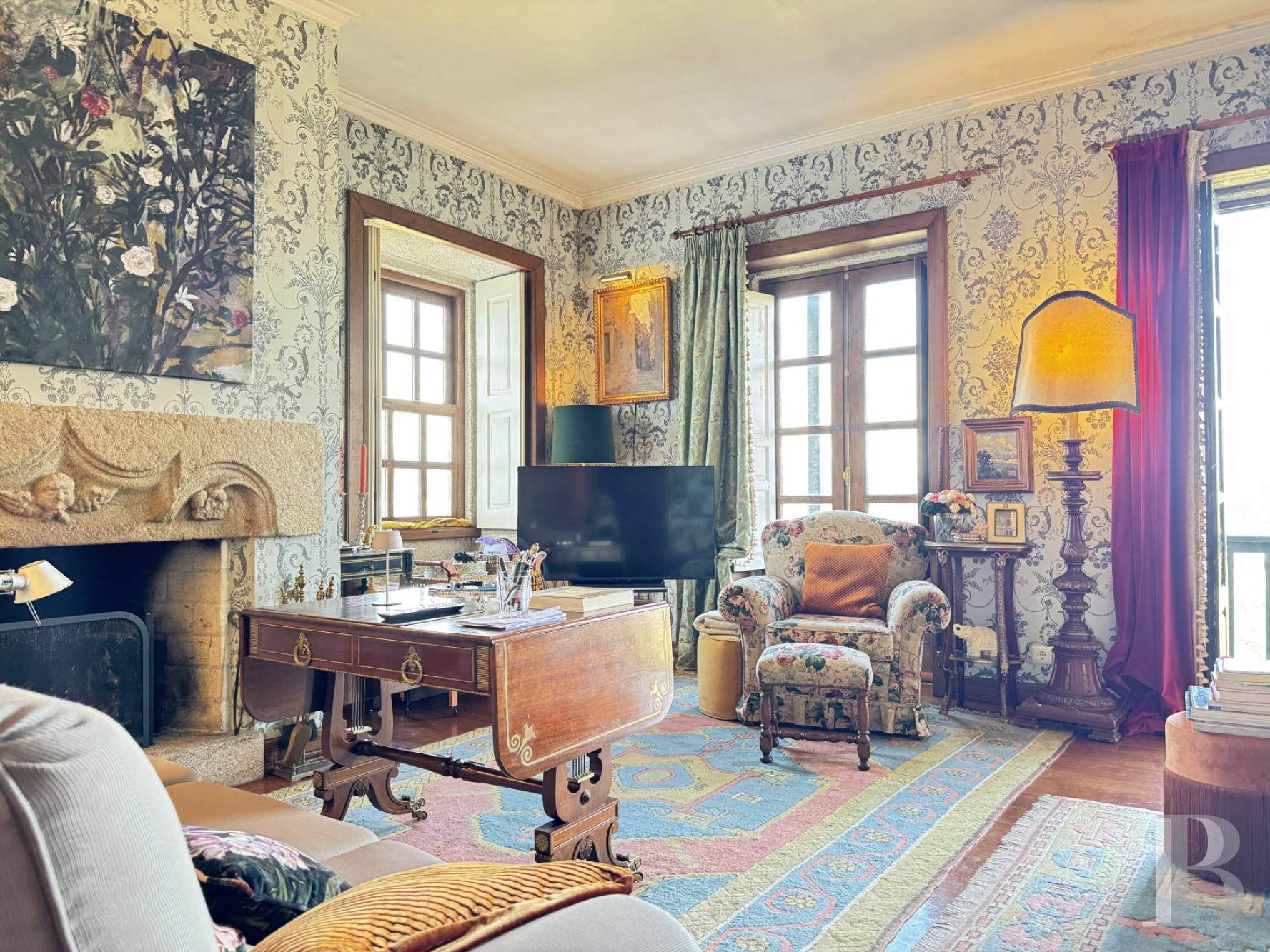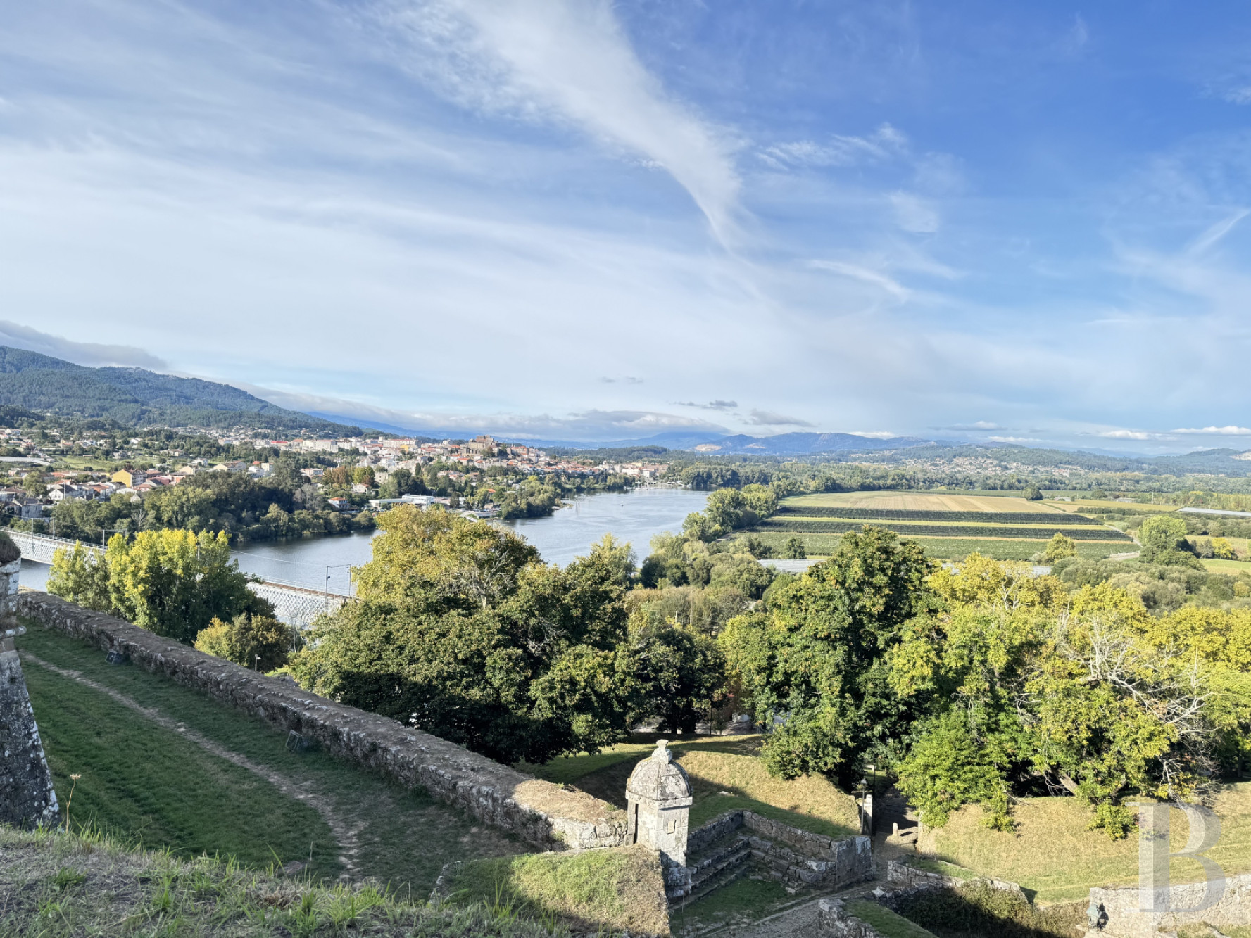Inside the fortress of Valença, a National Monument since 1910, a 19th-century neoclassical palace stands facing the Minho River and Tui Cathedral. Built by the Baron of Urgeira for his daughter, the complex includes the main residence and a historic annex, formerly a six-suite residence. The palace retains its original features: a Manueline carved stone fireplace, a French marble fireplace and solid wood floors. Seven bedrooms, six bathrooms, a library and living rooms occupy the interior spaces. The romantic gardens are home to camellias, magnolias and the rare Bela Portuguesa rose. The annex, which retains its original architectural features, could be converted into accommodation, a workshop or a gallery. Located between Porto and Vigo, thirty-five minutes from the Galician airport, the property will appeal to those looking for a place steeped in history in a stronghold that is a candidate for UNESCO World Heritage status.