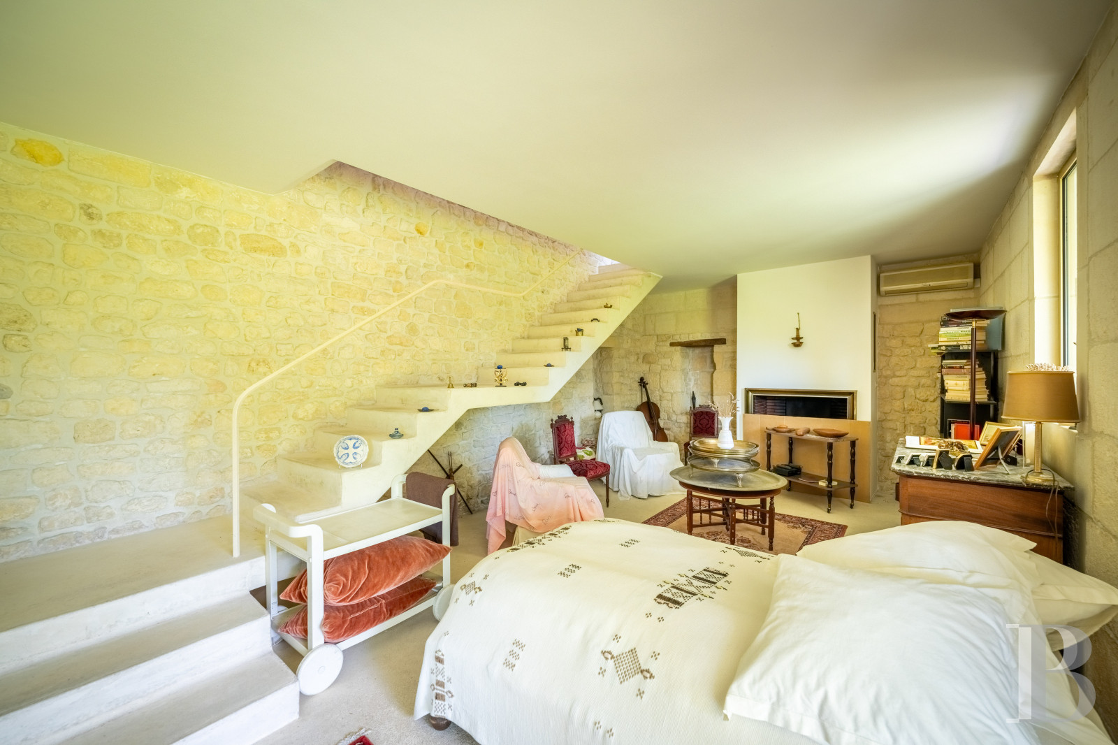A 19th-century house, redesigned in the 20th century, with typical Charentais architecture. Under the aegis of the omnipresent pastel sand-coloured stone, the construction has preserved its simultaneously simple, yet authentic character. Whether observing verdant nature from the ground floor or historical medieval defensive architecture – including the chateau and belfry – from the upper floor, the house guarantees a certain amount of privacy.