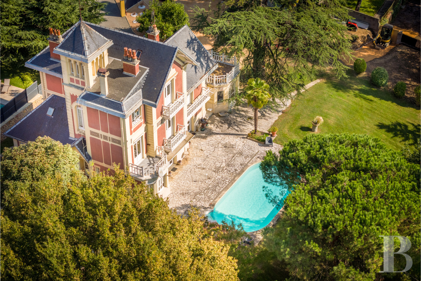 The manor house, built in 1870, has either two or three storeys, depending on its various volumes, and is topped with single-pitch, gable, three-sided and hipped slate rooftops. Built out of ashlar stone and covered in ochre-colour plaster, three rectangular sections or foreparts as well as a square tower make up the asymmetrical and elegant building, the various features of which recall the Gothic Revival style. With an exterior designed in such a way as to provide the dwelling with both its character and identity, its light-colour ashlar stone pilasters with smooth rusticated stonework and sharp corners accentuate its various angles.