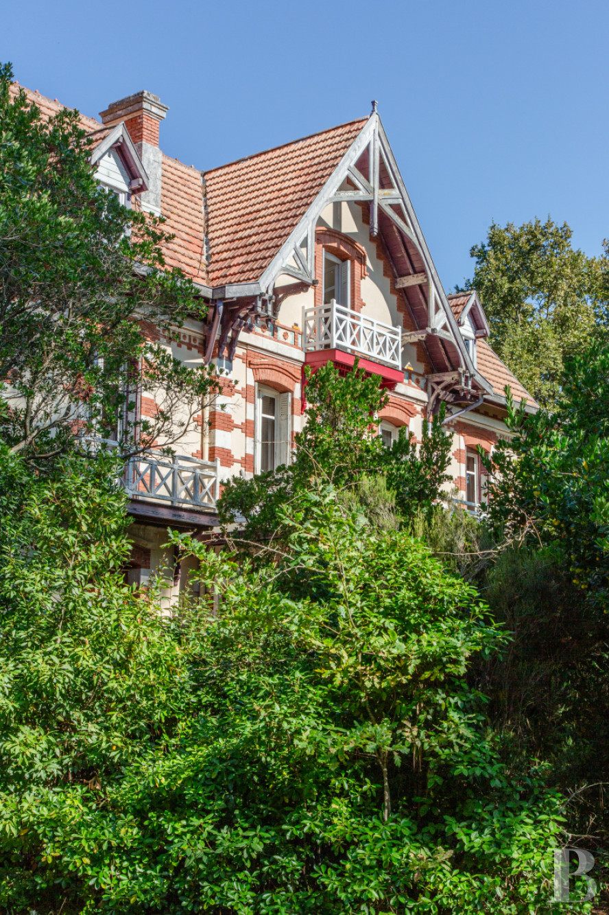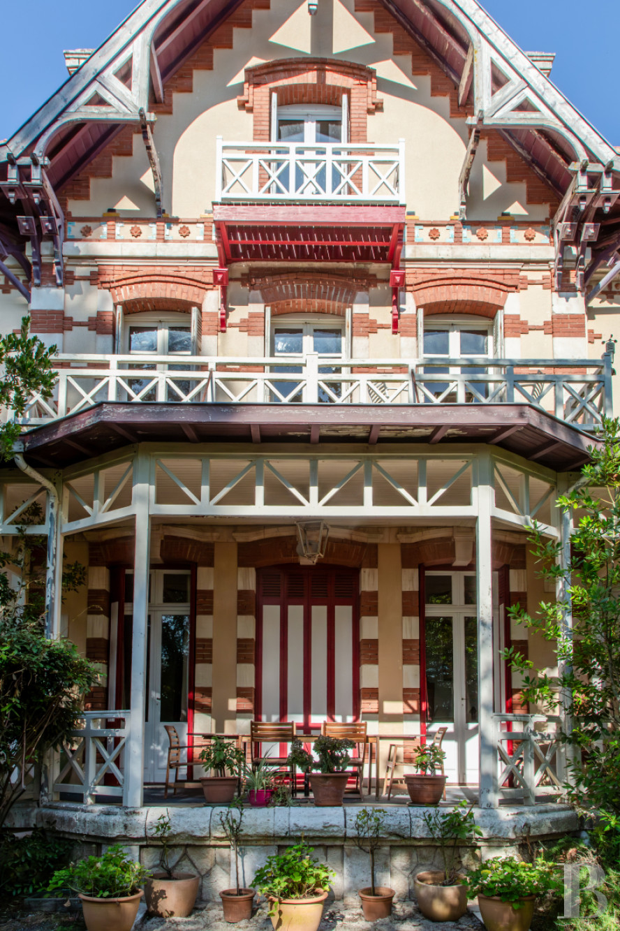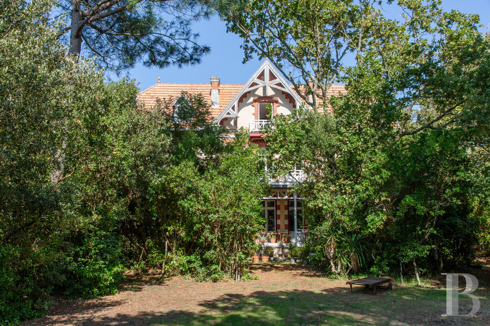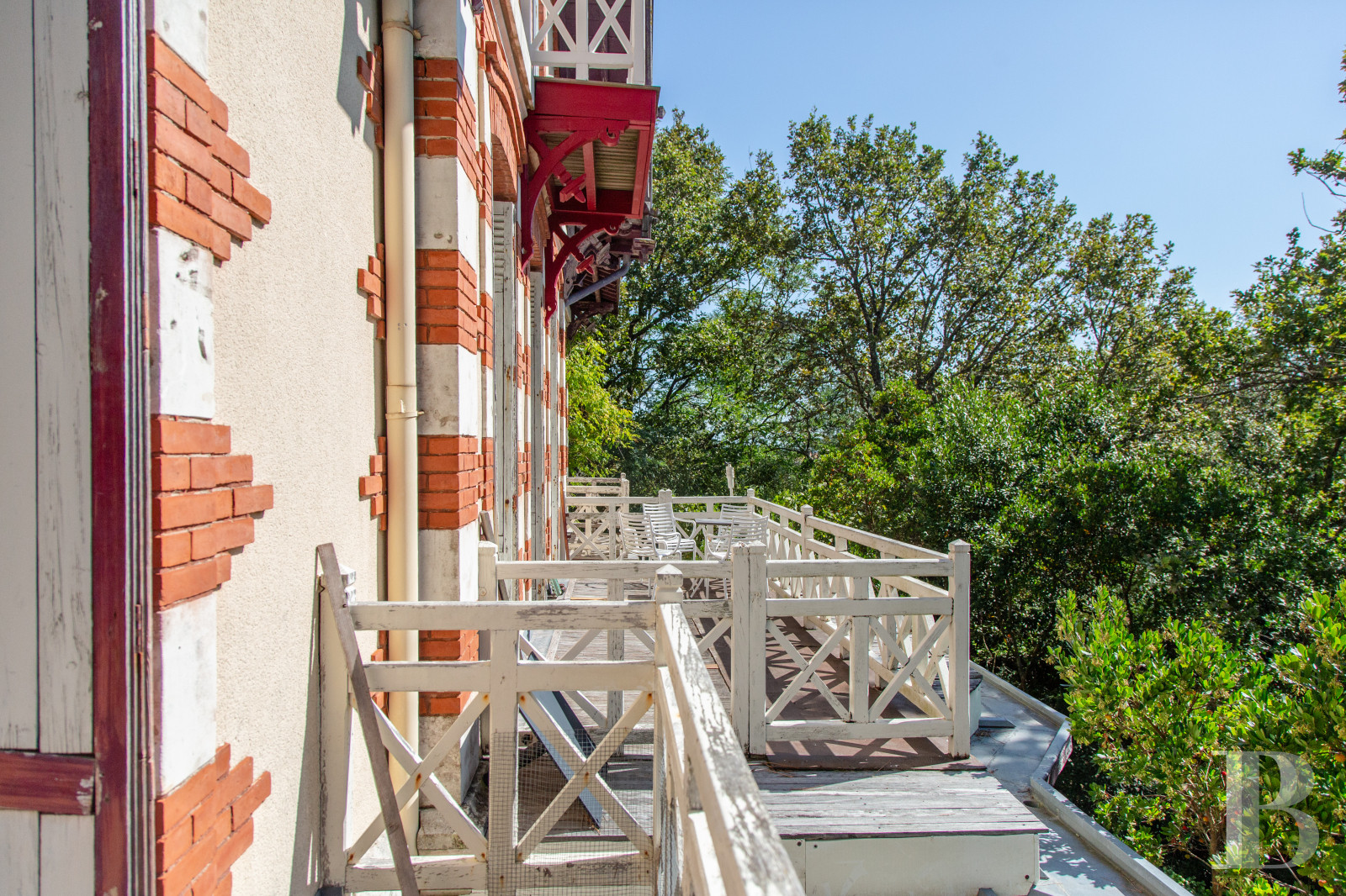 As for the first floor, completely independent, it is laid out around a wide hallway with pitch pine hardwood floors. To the east, a large kitchen is separated from the living room/dining room with an atelier window, the latter of which enjoys plunging views of the beach and the ocean's horizon, while, further on, two bedrooms, facing the sea, are each extended by a wooden balcony typical of Arcachon villas and two more bedrooms look out over the grounds.