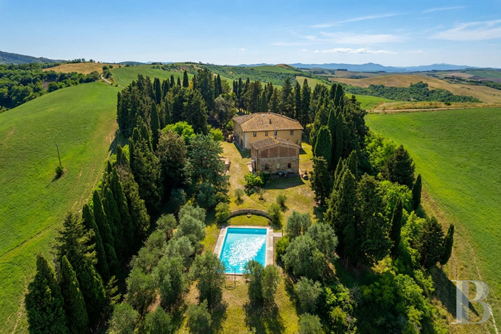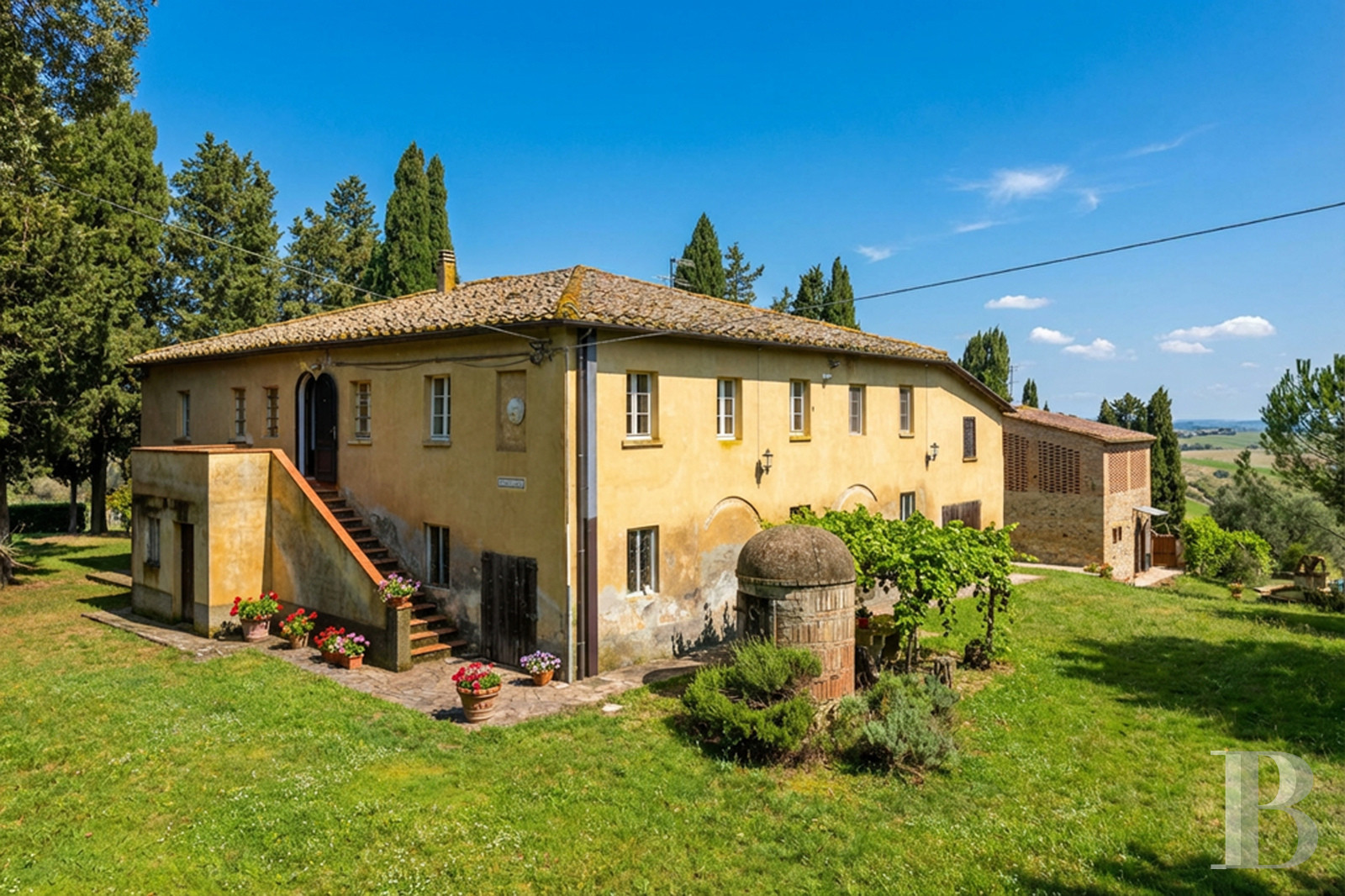 A rare balance between preserved agricultural heritage and a strong contemporary presence. The casale offers generous spaces, with the ground floor featuring shops, cellars and service rooms awaiting a new lease of life, while upstairs, three independent apartments are arranged around a bright shared living room. The 15,000 m² of land with century-old olive trees, towering cypresses and views of the Volterrane hills structure the landscape. A property that combines Tuscan authenticity and multiple possibilities in an area where history and art intertwine beautifully, far from tourist standardisation.
