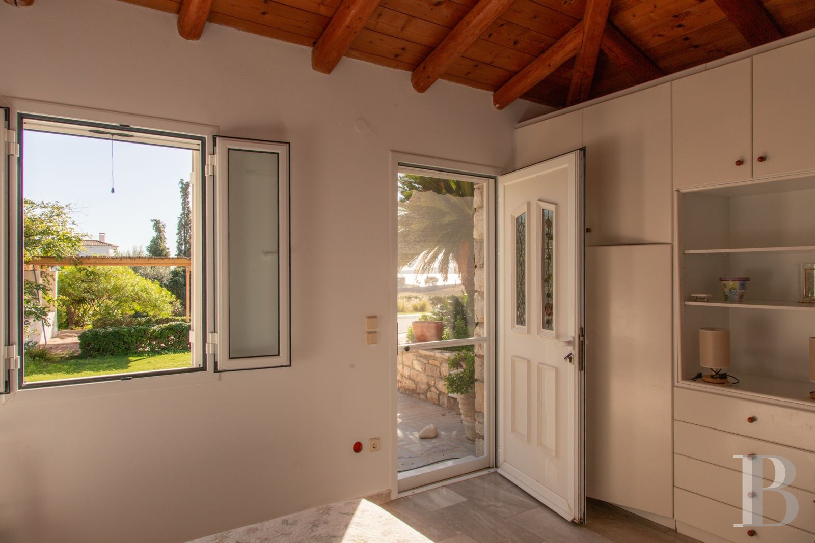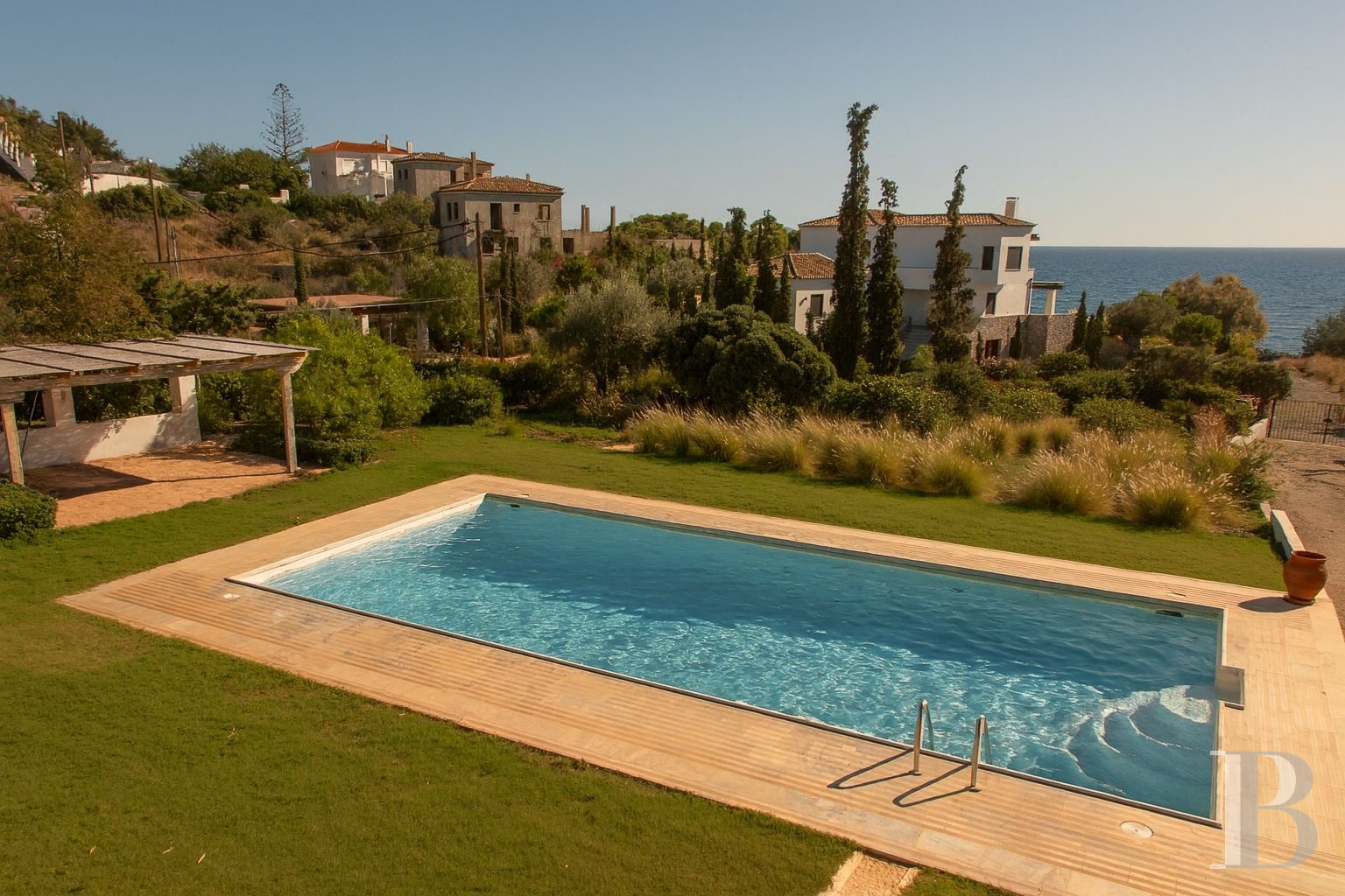 Reflecting its Argolic surroundings, this property is the ideal setting to enjoy the combination of crystal-clear sea with easy access, a Mediterranean garden irrigated by a private well, and traditional architecture in preserved natural stone. Protected by 1,500 m² of land planted with olive trees, the main house and separate studio can be occupied by an extended family wishing to offer independence and autonomy to its members, or used as a seasonal rental property, either in whole or in part. The restoration has given aesthetic coherence to these spaces with their sober Mediterranean architecture, typical of the region, which highlights the beauty of the stone and natural materials. The size of the grounds, with their well-tended garden, centuries-old olive trees and seawater swimming pool, also allow for multiple uses: permanent family life, second home, or high-end tourist operation. Its location ten minutes from Ermioni, two and a half hours from Athens, and close to Porto Cheli, Spetses and Hydra are additional assets in a part of the Peloponnese that combines residential tranquillity with easy access by sea to the islands of the Saronic Gulf.