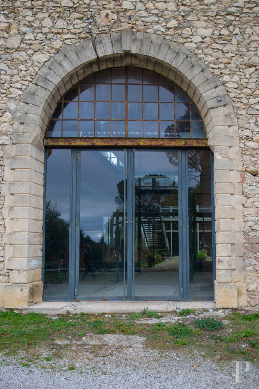 In addition, glass and metal help highlight what was, originally, a very rustic construction with dressed and pointed local stone exteriors topped with an interlocking tile roof, while large metal-framed picture windows punctuate each of its lateral sides, which were once used for storage. As for its “calade” stone floor, which alternates with large expanses of polished concrete, it provides a glimpse of how this space could be given a contemporary use that still highlights its era of construction, whereas a matte “Corten” steel door opens directly on to the wine storehouse’s private garden.