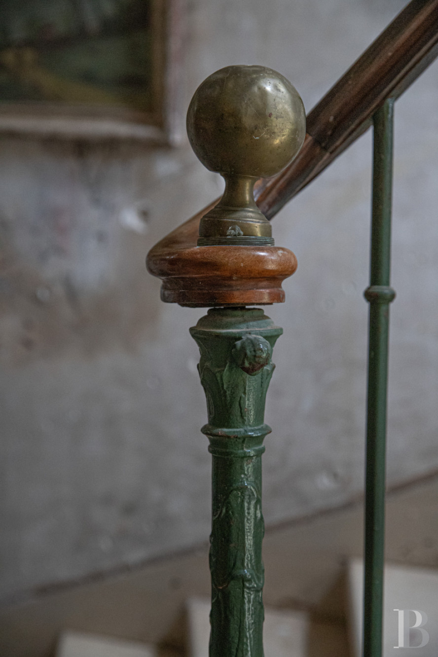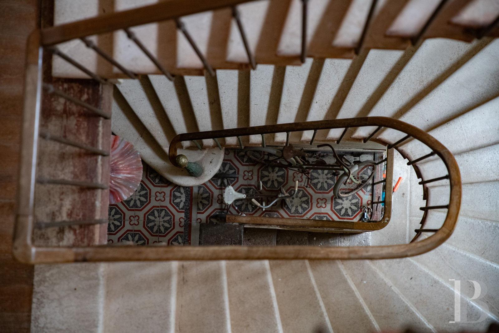 As for the staircase, whose painted and polished steps provide access to the upper floors, it is accessible via this central hallway, whereas all the windows on this floor are safeguarded by wooden shutters.
