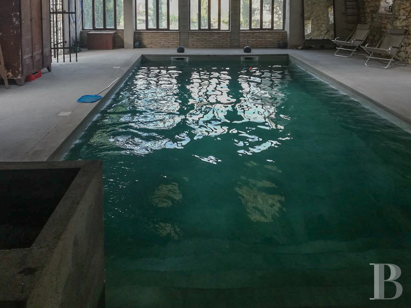 Lastly, an immense reception room, a 7 x 4-metre indoor swimming pool, a library, two vaulted rooms, one of which has a fireplace, and an adjacent kitchen round out the rooms in this eye-catching stone edifice.