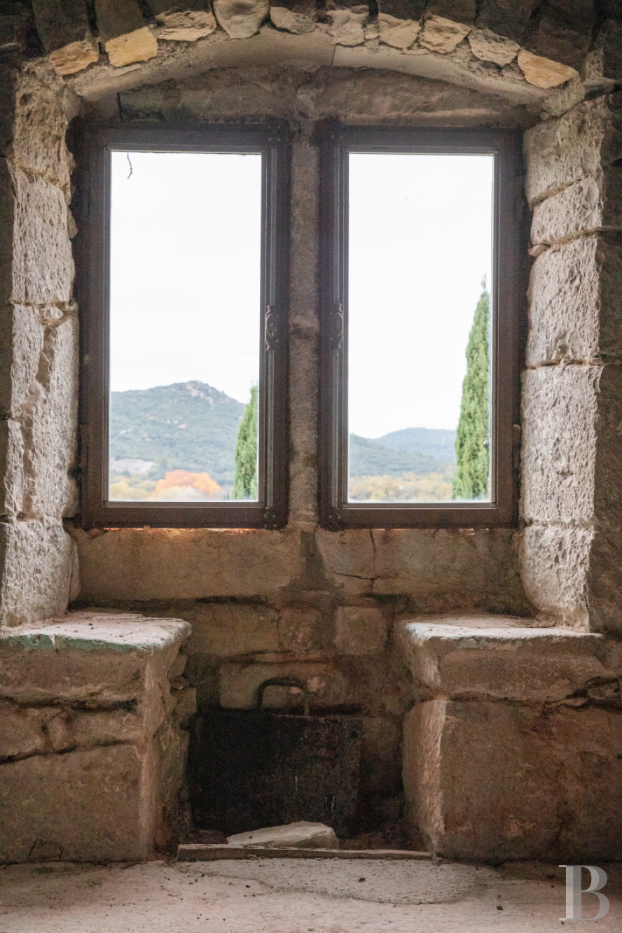 Extending over seven hectares, the grounds are currently divided up into two hectares of forests, 1.5 hectares of orchards and one hectare of vineyards, a drastic decrease compared to their former size. In addition, the vestiges of a small cross-shaped vegetable garden are still visible below the dovecote, while the property, slightly hilly, provides enchanting vistas of the surrounding countryside, with its colourful rolling topography, as well as breath-taking views of this little known section of the Cévennes Mountains.