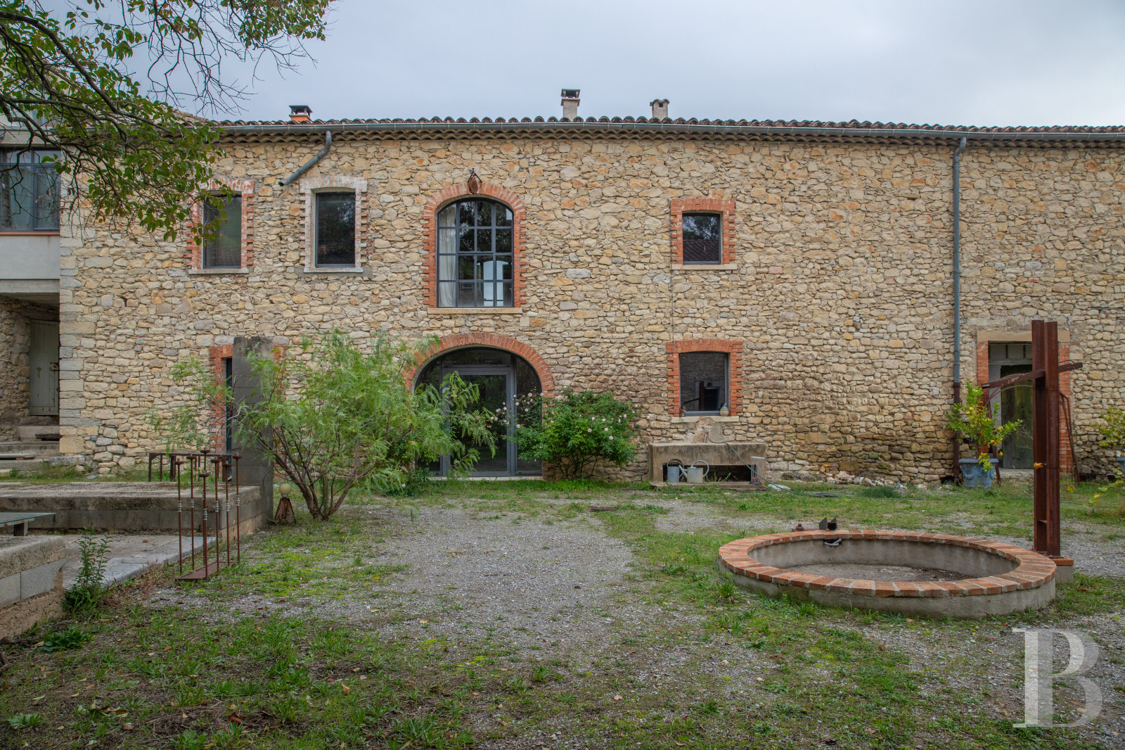 As for the “large Provencal farmhouse”, in all likelihood once a rural dwelling with its low vaulted rooms, it provides an obvious example of a building constructed over earlier vestiges, most likely from the late 17th or early 18th centuries, while the dovecote, built out of red briquettes and perched atop the roof of one of the outbuildings, dates to the early 20th century. The latter, now converted into living quarters, is surrounded by a series of small adjacent buildings, which are currently used as rental accommodations.