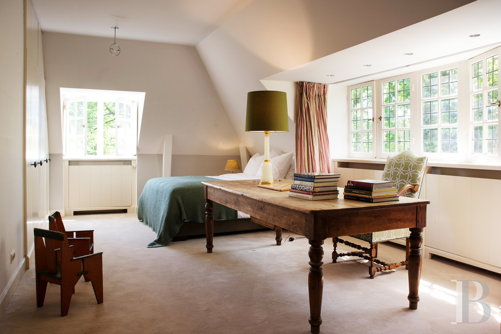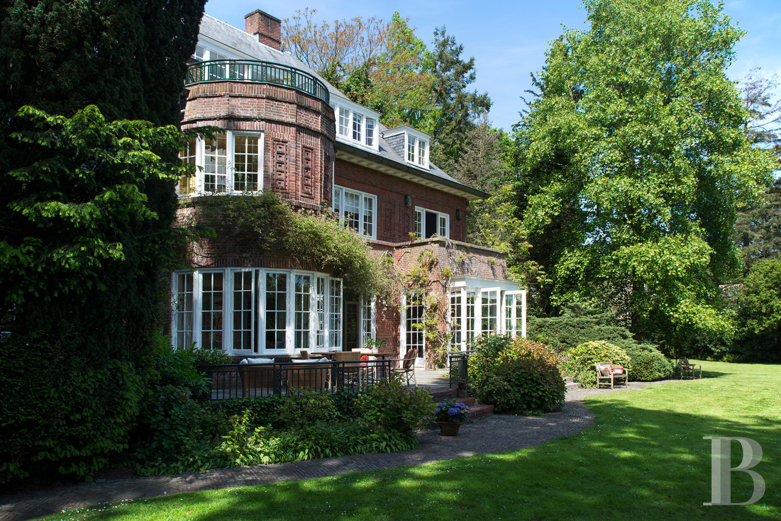 The roofs extend like wings, the lines recede towards the horizon without ever straightening, and the rounded oriels punctuate the façade with their gentle curves. Co Brandes designed the De Roemer villa between the wars, drawing on Frank Lloyd Wright's art of horizontality and combining it with English curves that soften the geometric rigour. The architect, whose name remains engraved in the landscape of The Hague and Wassenaar, delivers one of his most accomplished works here. The villa does not rise, it stretches. The widely overhanging roofs cast moving shadows on the walls, sculpting the light as the hours pass. The round oriels capture the daylight and make it dance around the rooms. The garden envelops the house in a preserved tranquillity, as if Wassenaar had managed to hold on to the interwar period. An architecture where America and England, modernity and tradition, sweeping gestures and intimate curves meet.