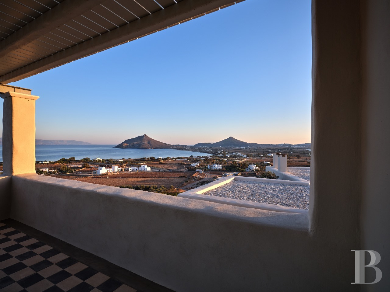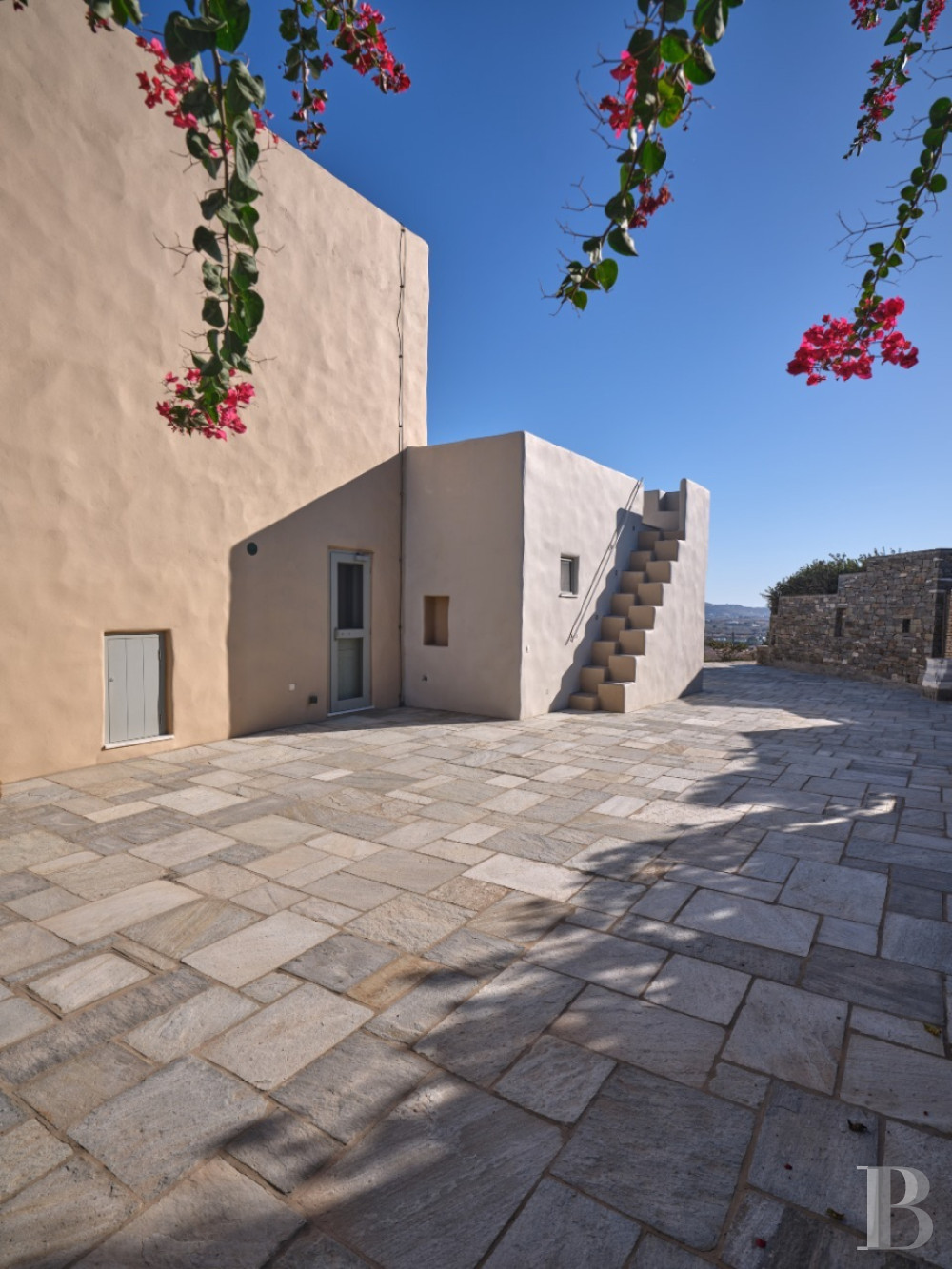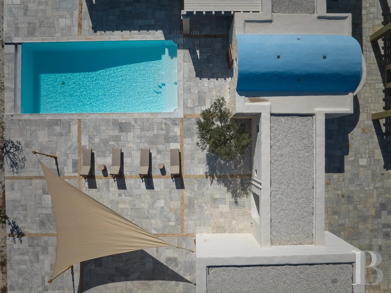There are villas whose beauty lies less in their architectural display than in the balance they strike between refined modernity and harmony with the island landscape. This is one of them. Its contemporary architecture, discreetly overlooking Isterni Bay, combines the rigour of spacious volumes with the intensity of maritime perspectives. Inside, the generous spaces, panoramic views of the sea and blue sky, and the harmonious separation between the main residence and large guest house by a private chapel create a world that is both intimate and open, where nothing is constrained. The elevated position on the hills of Isterni, a quiet hamlet on Paros, offers the privilege of exceptional sea views in an environment unspoilt by neighbouring buildings. Everything is there, nothing more to add.