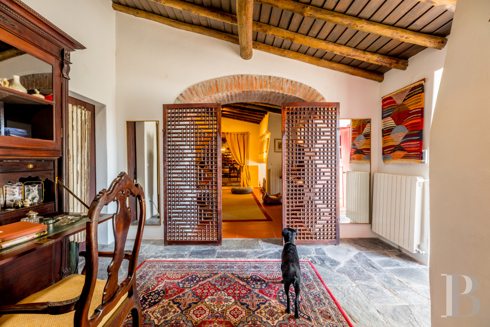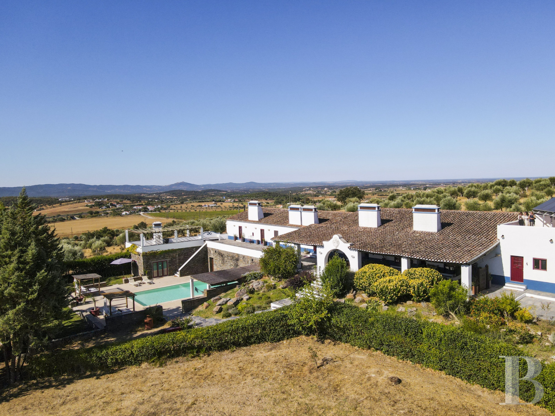 Five minutes from Estremoz, an estate built in the early 2000s brings together several traditional Alentejo dwellings around an architectural design that respects the old volumes. The complex covers nearly 500 square metres of living space, divided between a main residence organised into two wings connected by arches, a separate house and an annex near the swimming pool. Each wing has its own entrance. The four and a half hectares of hilly land feature an olive grove, an orchard and a vegetable garden irrigated by two boreholes, an old well and a pond. Water self-sufficiency allows for agricultural use without dependence on the mains supply. The proximity of Estremoz does not detract from the tranquillity of the location. With its layout and multiple spaces, the property is equally suited to family life, a hospitality project or a retirement home in the Alentejo hinterland.