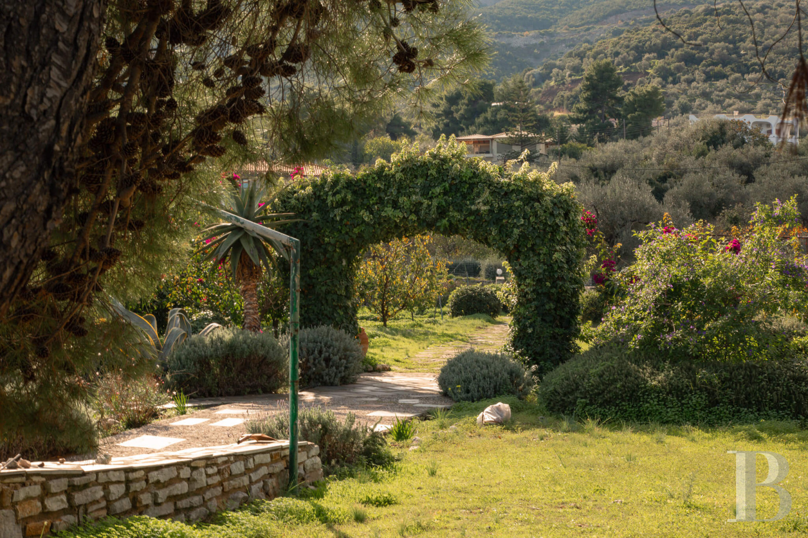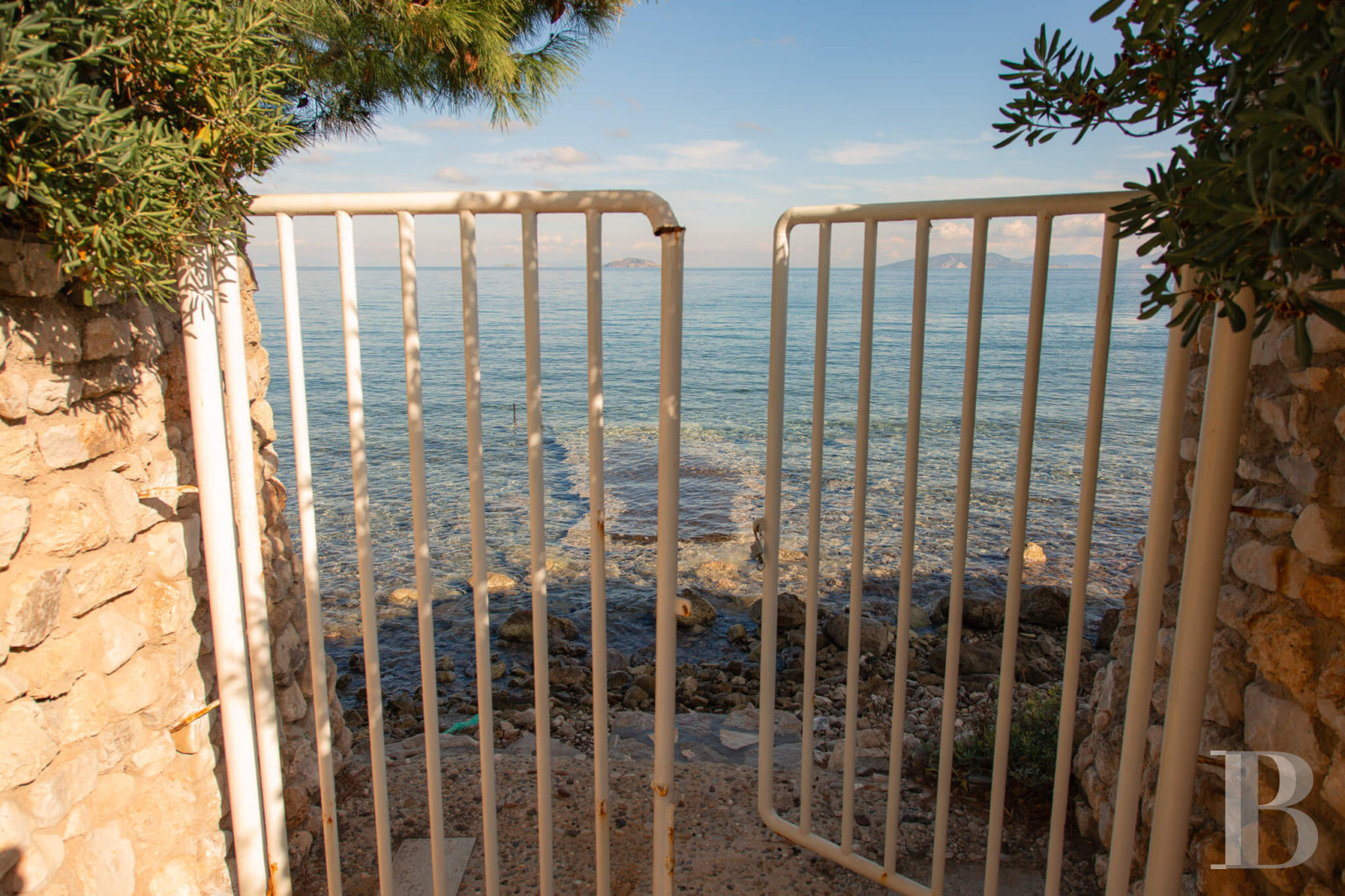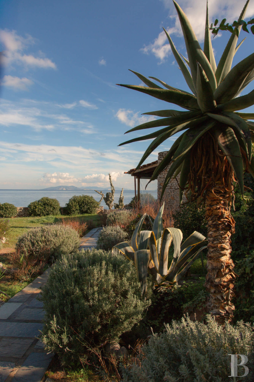 e architecture balances Cycladic rusticity with vernacular simplicity. The three buildings—a 65 m² house on the waterfront and two 25 m² studios set back from the shore—offer a total of five bedrooms, three bathrooms and several living spaces waiting to be reinvented. The mature Mediterranean garden and private beach, which extend over 4,000 m², as well as the quality of the immediate maritime environment, guarantee tranquillity and are particularly conducive to relaxation and contemplation of the sea. A heritage site that has escaped intensive coastal development, it offers the opportunity to develop an extended family home or a boutique tourist accommodation business, taking advantage of direct access to the shore, available building rights and the rarity of such a seafront location. The structures connected to the networks require extensive renovation, which will give the future occupant the opportunity to continue the history of the place while respecting its authentic stone walls.