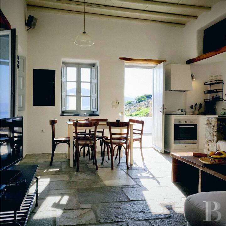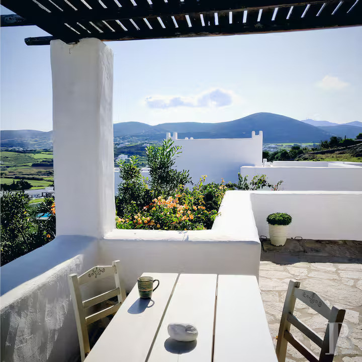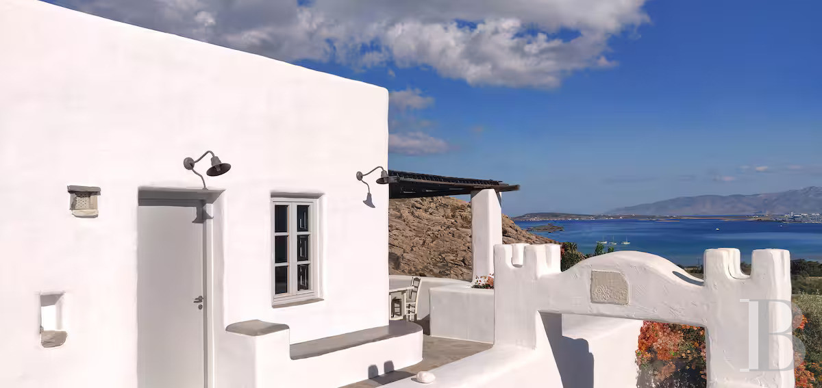 A Cycladic retreat: the description is apt when architectural authenticity, sea views and tranquillity come together on the sculpted heights of Kolymbithres. Here, overlooking Naoussa Bay, 133 m² spread over two levels and 2,800 m² of unspoilt land form a setting where family life and entertaining guests find their natural balance. The commanding position above the rock formations of Kolymbithres, the beaches just a few minutes' walk away, and the lively village of Naoussa seven minutes away by car make this a privileged setting. A place that lends itself equally well to permanent residence or seasonal holidaying, in an area of Paros that retains its Cycladic authenticity and unspoilt coastal landscapes, where rocks sculpted by the waves have for centuries formed one of the most photographed coastlines in the Cyclades.