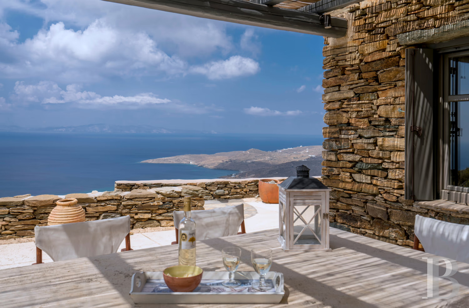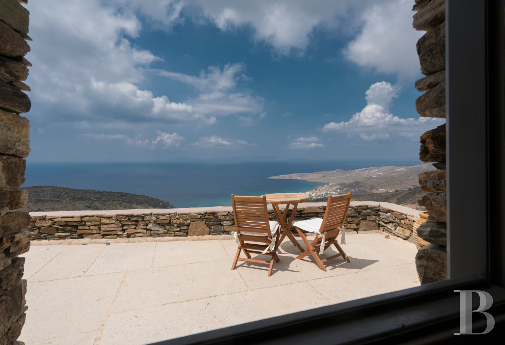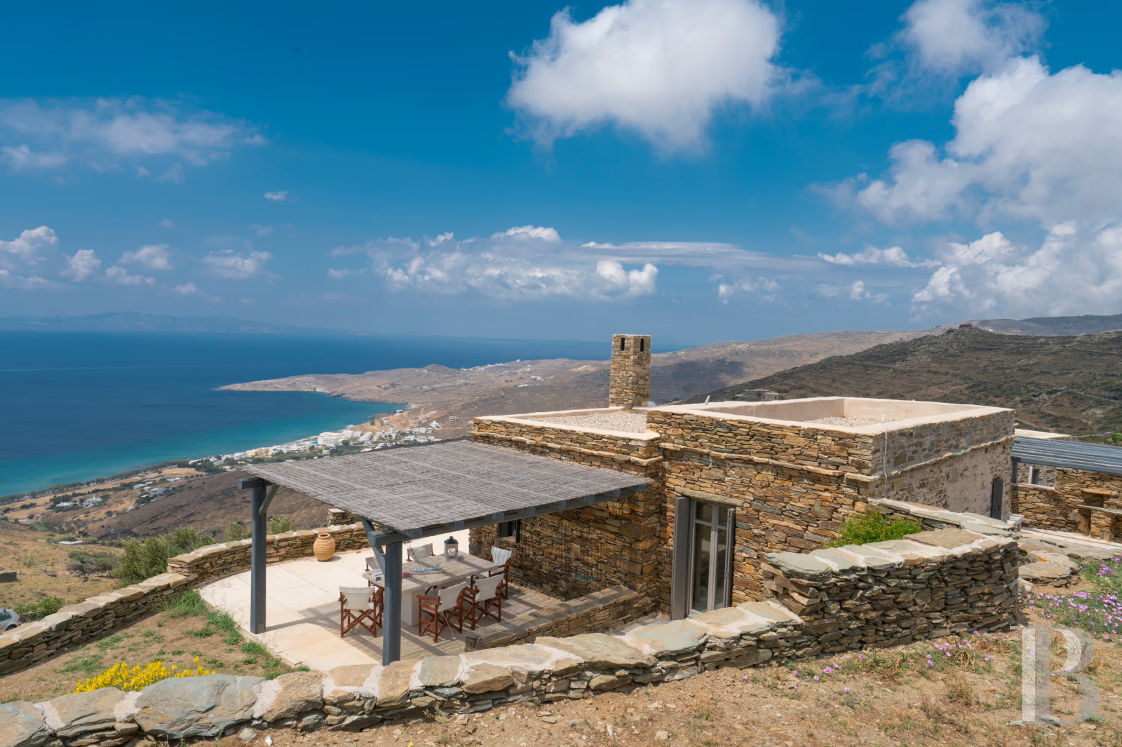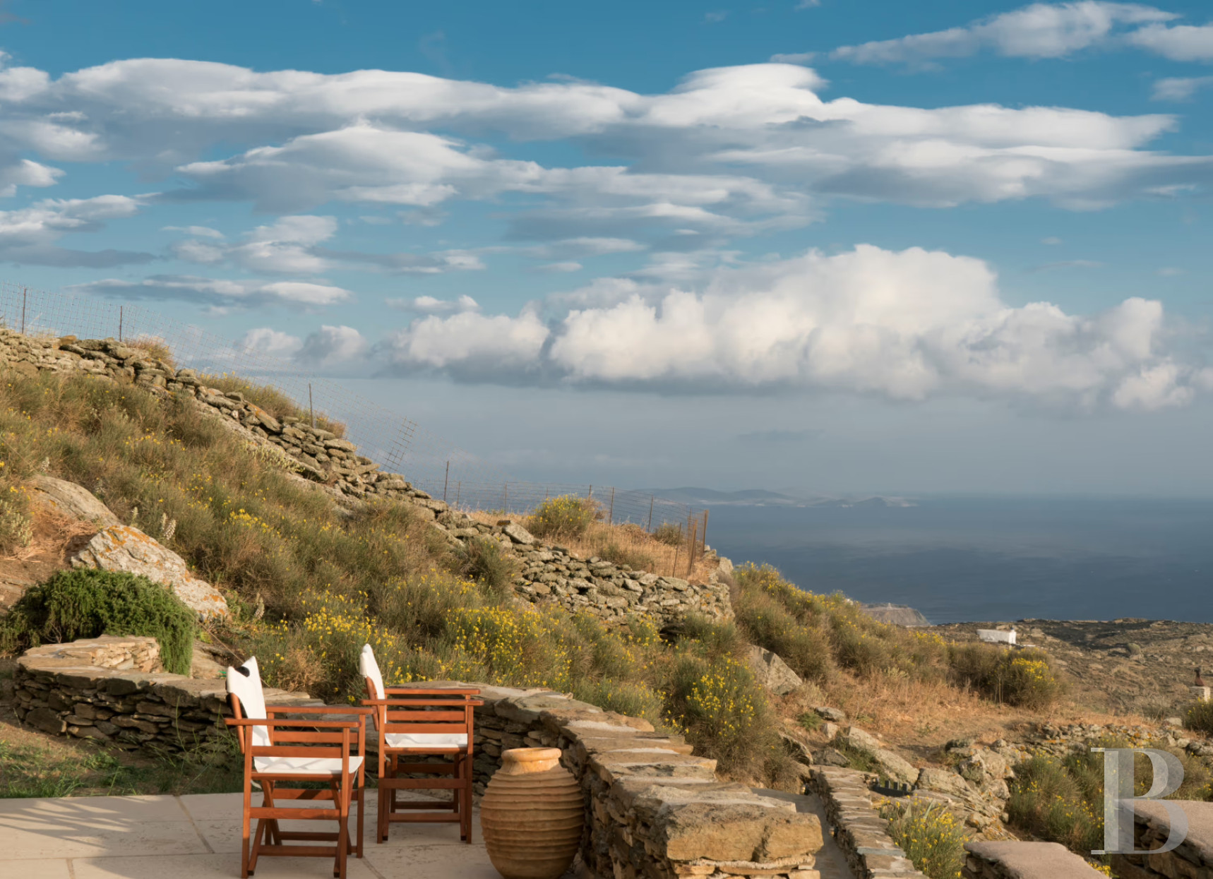 Perched on a hillside on the western coast of Tinos, this traditional west-facing residence bridges the gap between vernacular Cycladic architecture and contemporary comfort. The property combines island simplicity with exceptional sea views, from terraces built into stone volumes. The interior spaces comprise two bedrooms, a living room and a kitchen, all in impeccable condition and ready for immediate occupancy. The house is integrated into the 1,181 m² plot, which follows the natural slope facing the Aegean Sea sunsets. A few kilometres from the island's characteristic marble villages and dovecotes, this property is ideal for a family seeking authentic island living, combining unspoilt agricultural tranquillity with easy access to the port of Tinos, an Orthodox pilgrimage island that maintains its craft traditions and community life, far from the tourist developments that have altered other parts of the Cyclades.