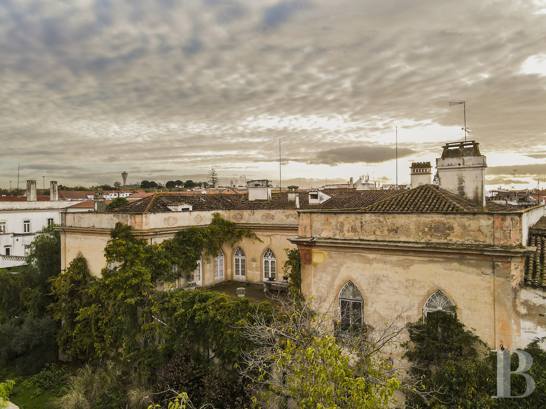Rare and unique... This Victorian Gothic palace, built in 1857 in the Alentejo region, has preserved the mark of its aristocratic patrons. It is more than just a 19th-century residence: its interior reveals architecture that is unusual for the region, where Gothic aesthetics interact with Victorian proportions. The main floor features six-metre-high ceilings, decorated with original stucco and frescoes that bear witness to a bygone way of life. Eight bedrooms, four bathrooms, spacious living rooms with period features and terraces make up the 2,000 m² of the residence, set within a 4,000 m² enclosed garden that enhances the whole. The palace's size makes it ideal for a variety of projects, a quality enhanced by its proximity to Monsaraz and the waters of the Alqueva. The property, which requires complete restoration, thus offers a wide range of possibilities: private residence or tourist accommodation. An opportunity to continue the history of an architectural work whose unique identity remains intact.